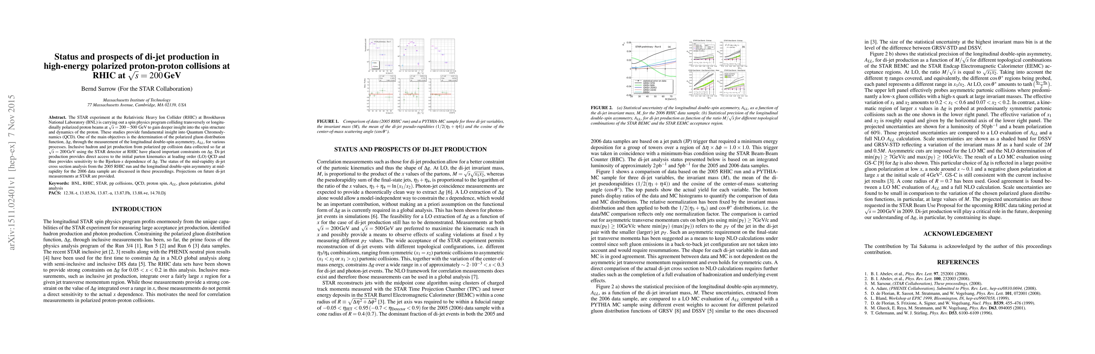 The STAR experiment at RHIC investigates di-jet production in high-energy polarized proton-proton collisions to determine the polarized gluon distribution function. The 2005 data analysis and 2006 longitudinal double-spin asymmetry measurements provide insights into the Bjorken-x dependence of gluons, with projections for future di-jet studies at STAR.