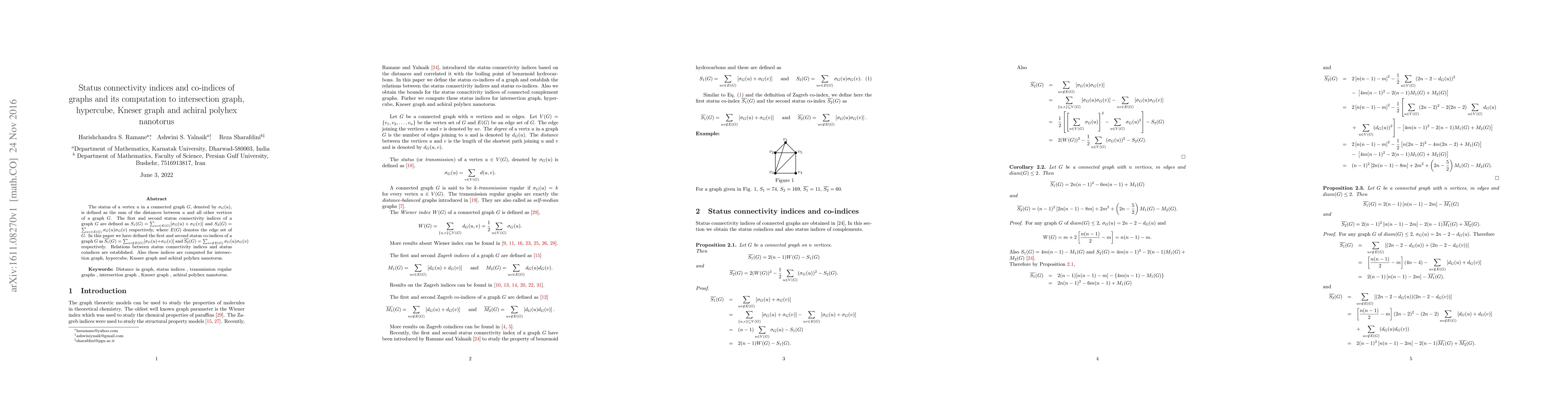 This paper defines first and second status connectivity indices and their co-indices for graphs, establishing relationships between them. It computes these indices for the intersection graph, hypercube, Kneser graph, and achiral polyhex nanotorus.