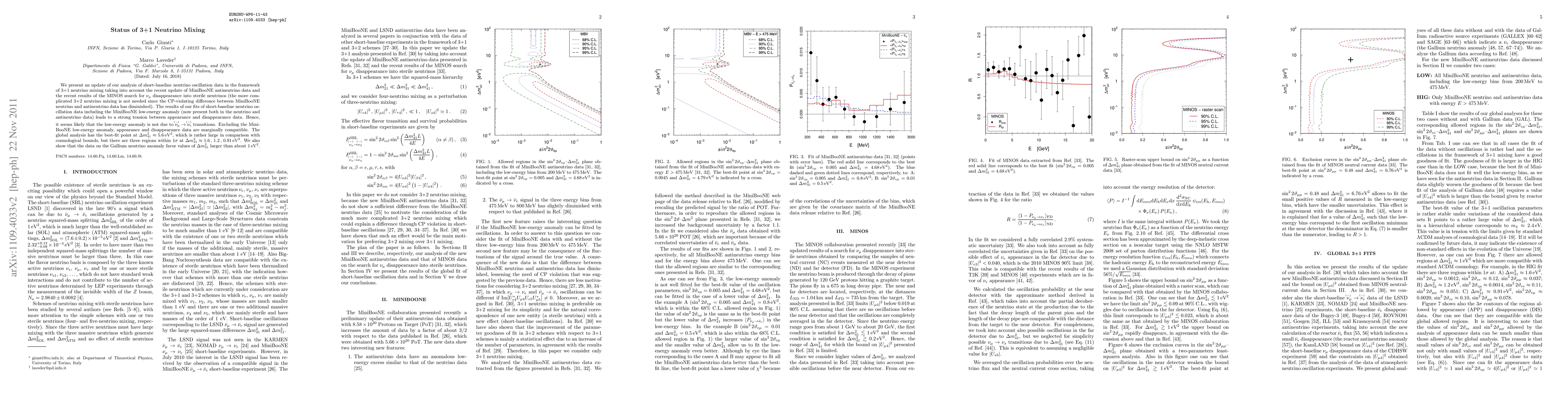 This paper updates the analysis of short-baseline neutrino oscillation data within the 3+1 neutrino mixing framework, incorporating recent MiniBooNE and MINOS results. The study finds a strong tension between appearance and disappearance data, suggesting the low-energy anomaly may not be due to neutrino transitions, and indicates best-fit values for Delta m^2_{41} around 5.6 eV^2, with additional regions within 1 sigma at lower values.