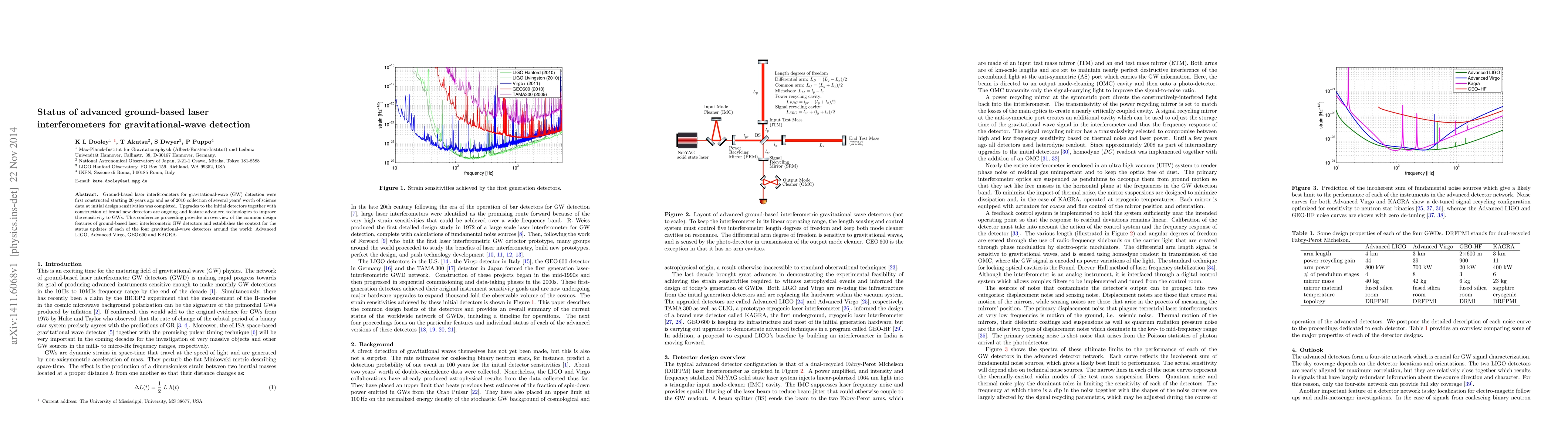 Ground-based laser interferometers for gravitational-wave (GW) detection were first constructed starting 20 years ago and as of 2010 collection of several years' worth of science data at initial design sensitivities was completed. Upgrades to the initial detectors together with construction of brand new detectors are ongoing and feature advanced technologies to improve the sensitivity to GWs. This conference proceeding provides an overview of the common design features of ground-based laser interferometric GW detectors and establishes the context for the status updates of each of the four gravitational-wave detectors around the world: Advanced LIGO, Advanced Virgo, GEO600 and KAGRA.