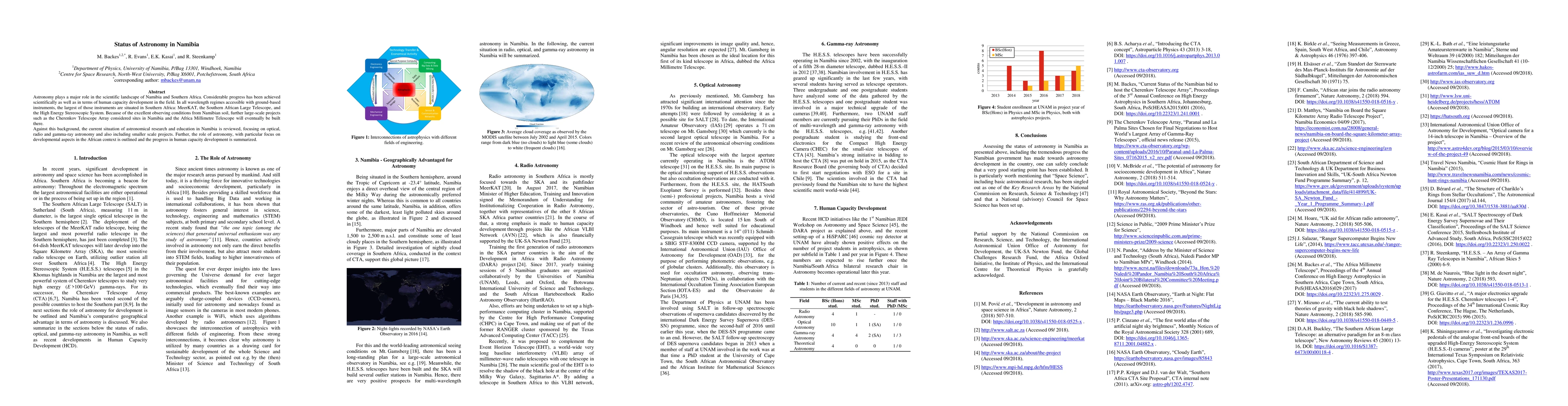 Astronomy is thriving in Namibia, with notable research and development projects like MeerKAT and future plans for the Cherenkov Telescope Array and Africa Millimetre Telescope. The country's excellent observing conditions make it an attractive location for large-scale astronomy initiatives.