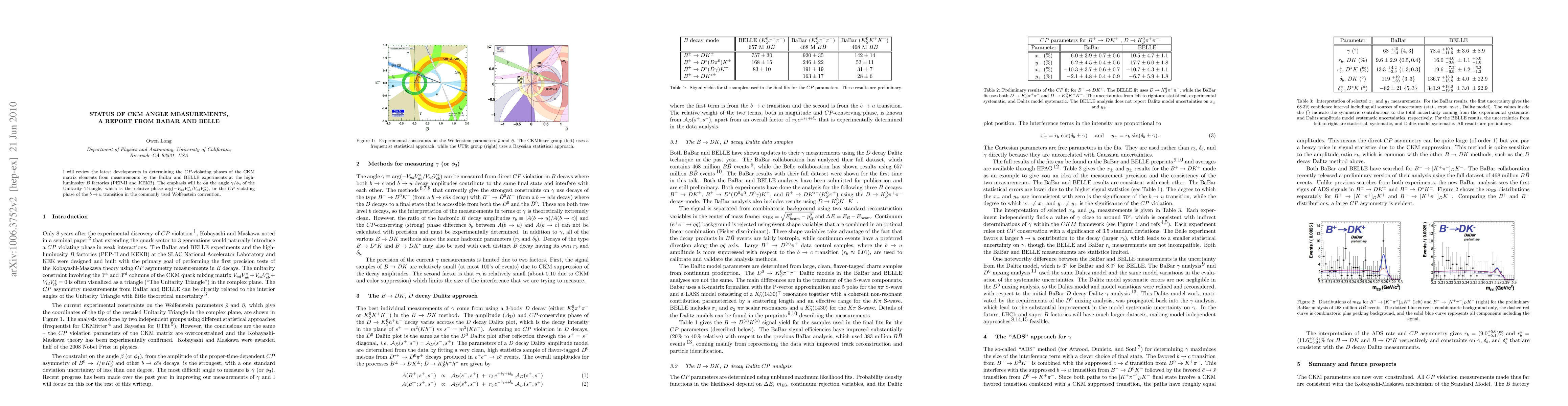 This paper reviews recent advancements in measuring the CP-violating phase gamma/phi_3 of the CKM matrix from the BaBar and BELLE experiments, focusing on the angle's significance in the Unitarity Triangle and the b to u transition in the Wolfenstein convention. The findings contribute to a deeper understanding of CP violation in weak interactions.