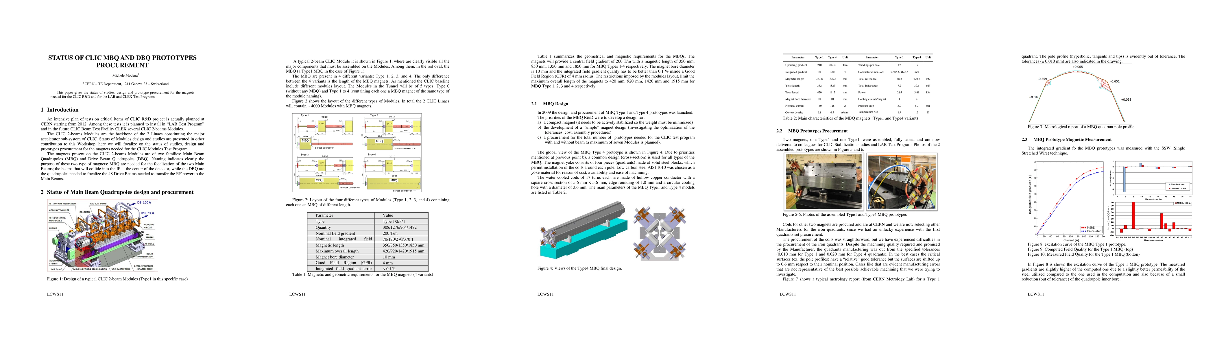 This paper gives the status of studies, design and prototype procurement for the magnets needed for the CLIC R&D and for the LAB and CLEX Test Programs.