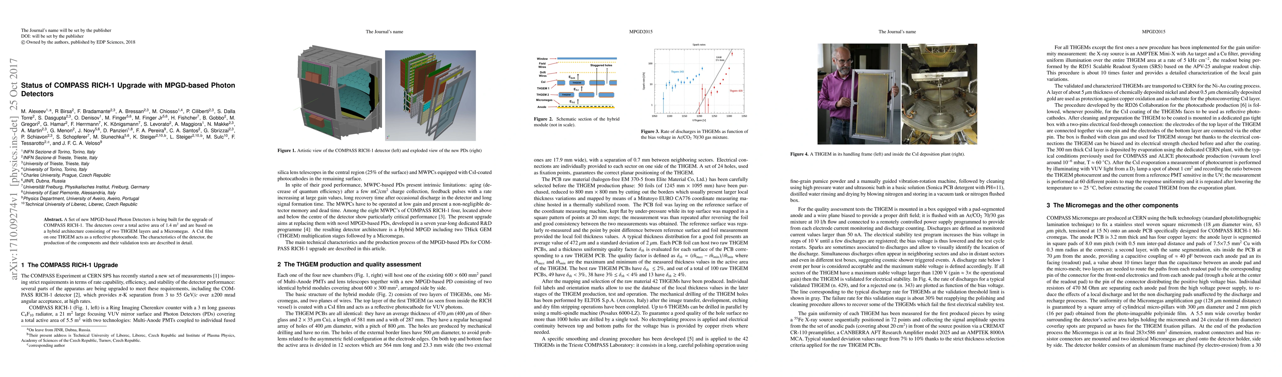 The COMPASS RICH-1 upgrade is incorporating new MPGD-based photon detectors featuring a hybrid architecture with two THGEM layers and a Micromegas, covering an active area of 1.4 m$^2$, and undergoing detailed production and validation testing.