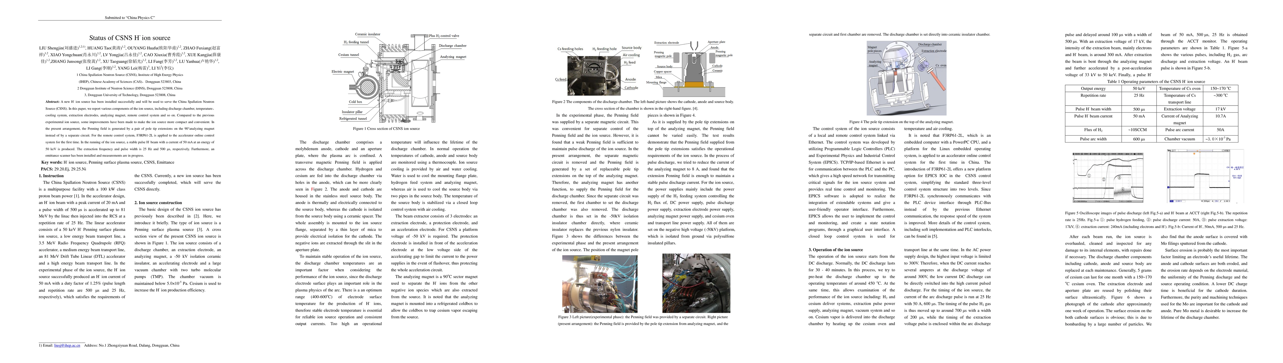 A new H^- ion source has been installed successfully and will be used to serve the China Spallation Neutron Source (CSNS). In this paper, we report various components of the ion source, including discharge chamber, temperature, cooling system, extraction electrodes, analyzing magnet, remote control system and so on. Compared to the previous experimental ion source, some improvements have been made to make the ion source more compact and convenient. In the present arrangement, the Penning field is generated by a pair of pole tip extensions on the analyzing magnet instead of by a separate circuit. For the remote control system, F3RP61-2L is applied to the accelerator online control system for the first time. In the running of the ion source, a stable pulse H- beam with a current of 50 mA at an energy of 50 keV is produced. The extraction frequency and pulse width is 25 Hz and 500microsecond, respectively. Furthermore, an emittance scanner has been installed and measurements are in progress.