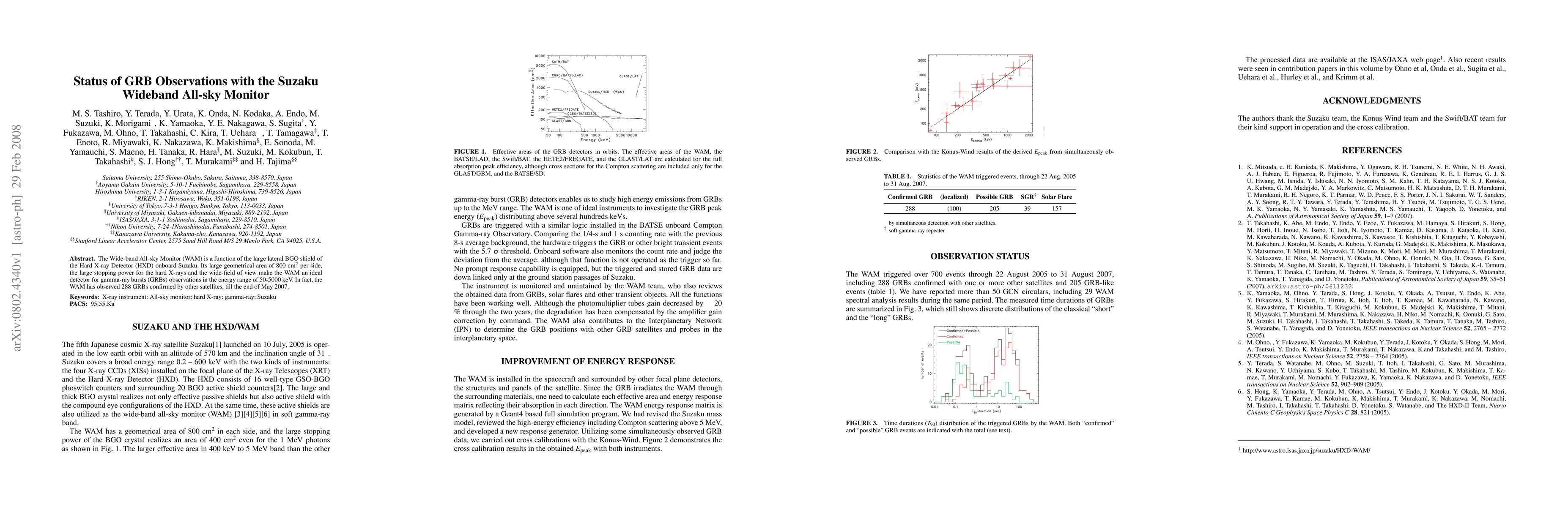 This paper reviews the observations of gamma-ray bursts (GRBs) made by the Wide-band All-sky Monitor (WAM) on the Suzaku satellite, noting that it detected 288 GRBs by the end of May 2007, leveraging its large geometrical area and wide field of view.