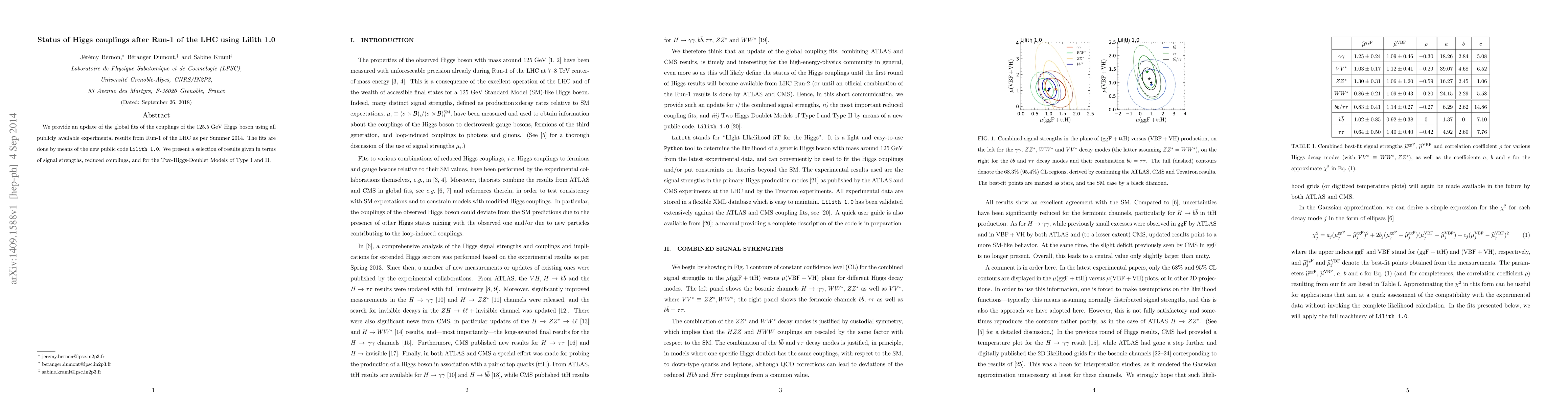The analysis used Lilith 1.0 code and presented results in terms of signal strengths and reduced couplings for various models, including Two-Higgs-Doublet Models.