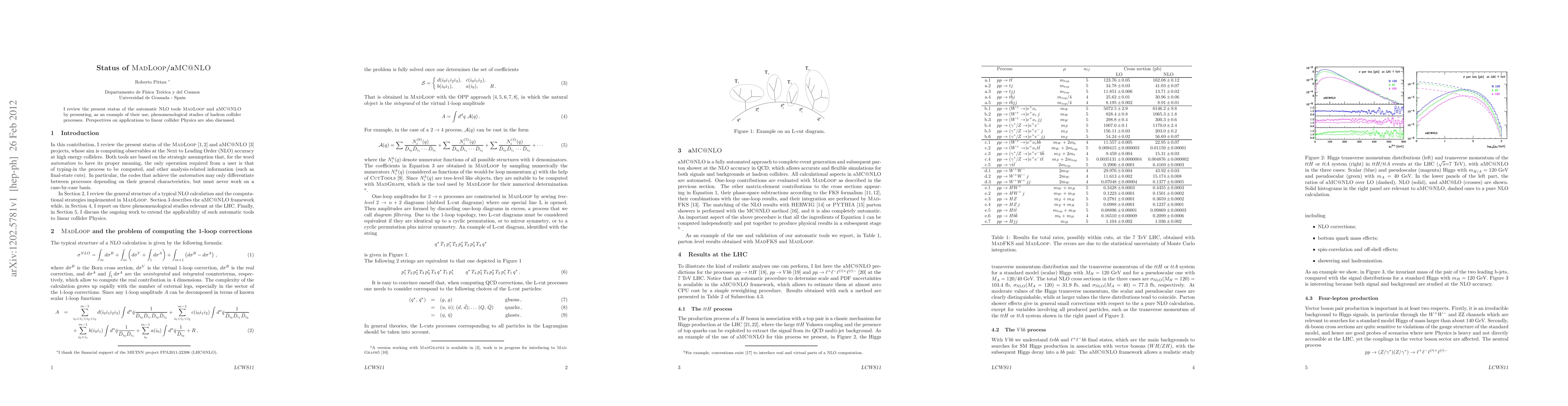 I review the present status of the automatic NLO tools MadLoop and aMC@NLO by presenting, as an example of their use, phenomenological studies of hadron collider processes. Perspectives on applications to linear collider Physics are also discussed