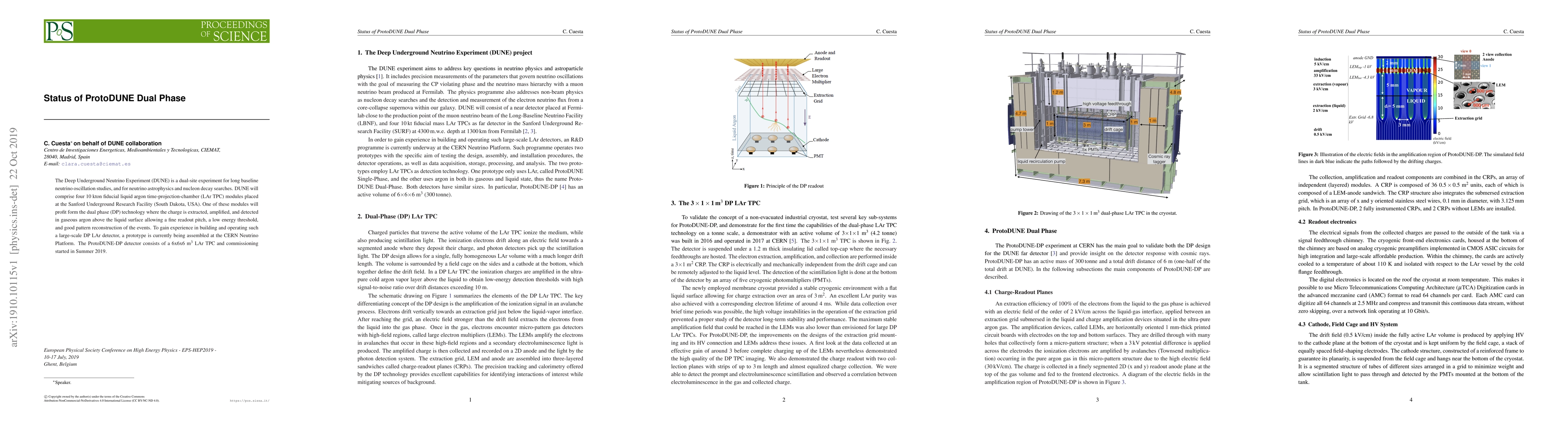 The ProtoDUNE Dual Phase prototype is being assembled at CERN to test the dual-phase technology for the DUNE experiment, which aims to study neutrino oscillations and astrophysics. Commissioning of the 6x6x6 m³ LAr TPC began in Summer 2019.