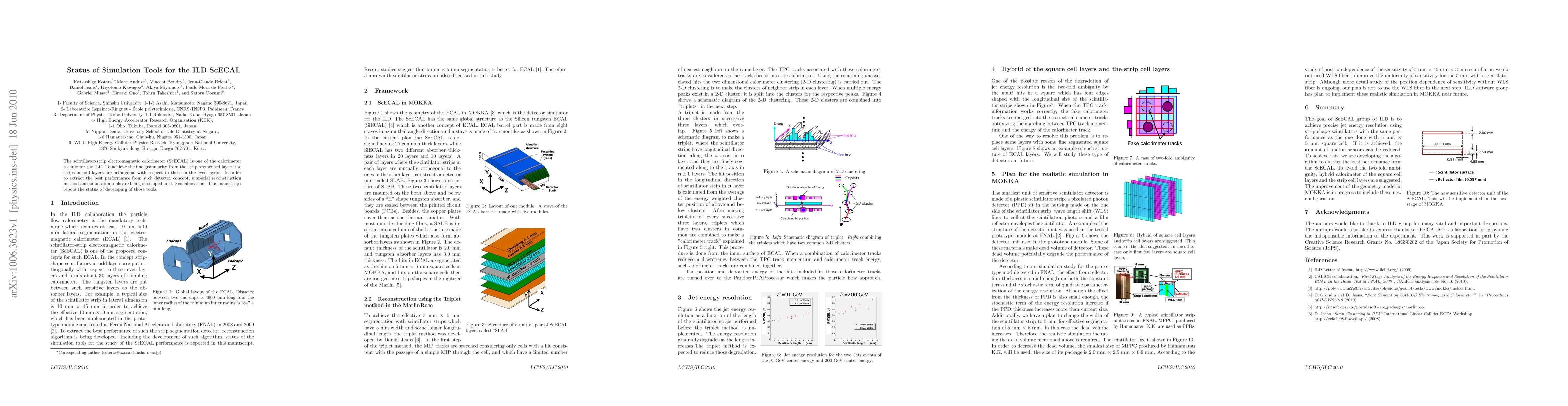 This paper reviews the current status of simulation tools being developed by the ILD collaboration to optimize the performance of the scintillator-strip electromagnetic calorimeter (ScECAL) for the International Linear Collider (ILC), focusing on the unique strip segmentation and orthogonality in its design. The manuscript highlights the progress made in creating specialized reconstruction methods and simulation tools.