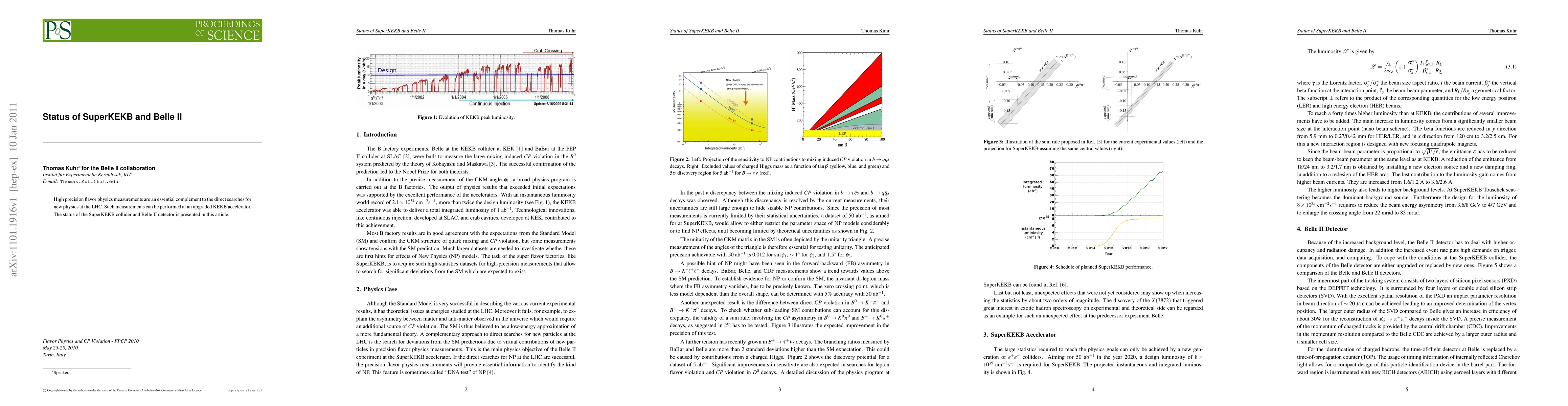 The article provides an update on the SuperKEKB accelerator and the Belle II detector, which are crucial for high-precision flavor physics measurements complementing LHC searches for new physics. The current status and progress of these facilities are detailed.