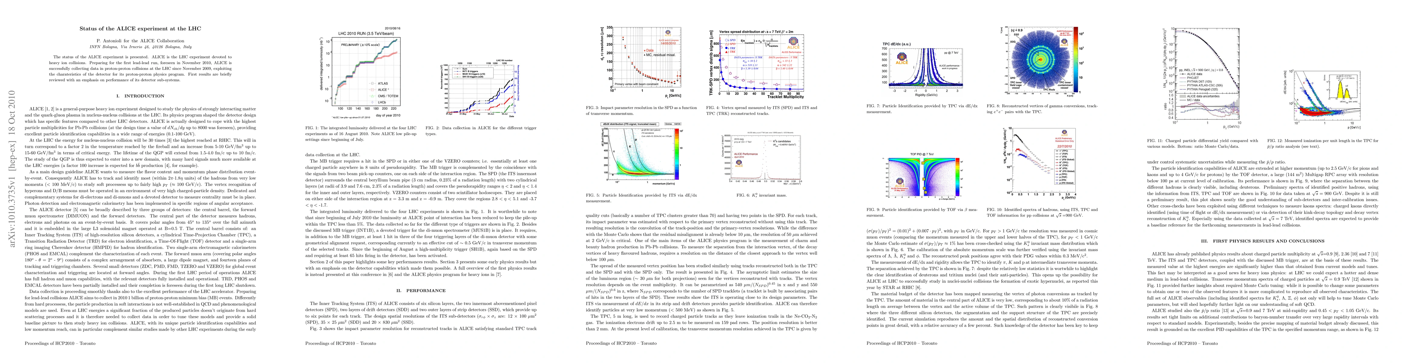 The ALICE experiment at the LHC is preparing for its first lead-lead run in November 2010, having successfully collected data since November 2009 in proton-proton collisions, and initial results highlight the detector's performance in its sub-systems.