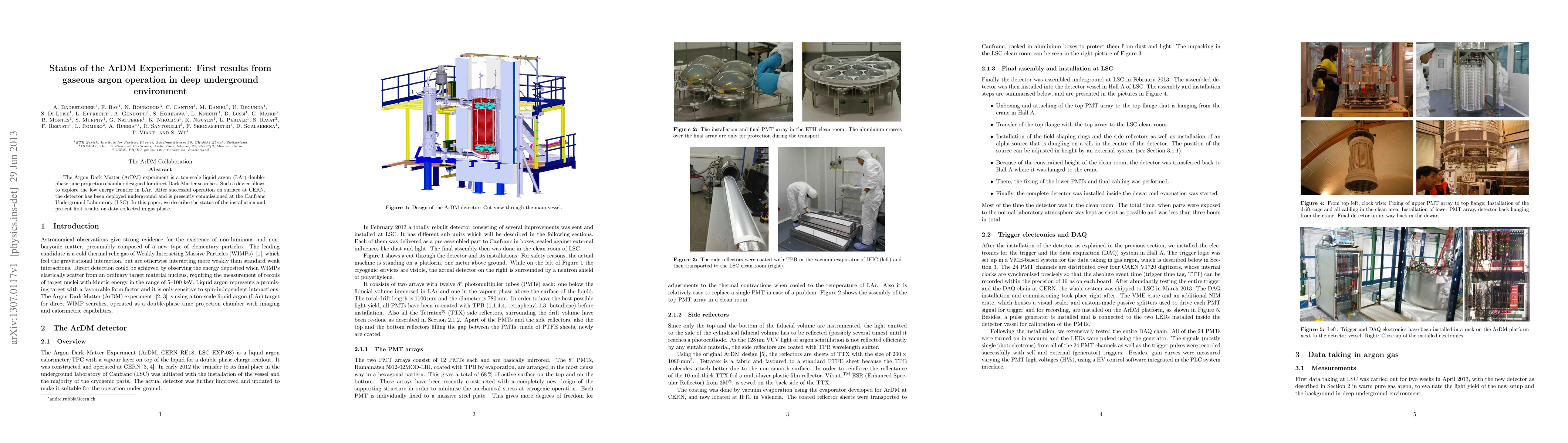 The ArDM-1t experiment, a ton-scale liquid argon detector for dark matter searches, has been deployed underground at the Canfranc Underground Laboratory. Initial results from its gaseous argon operation show promising data collection capabilities.