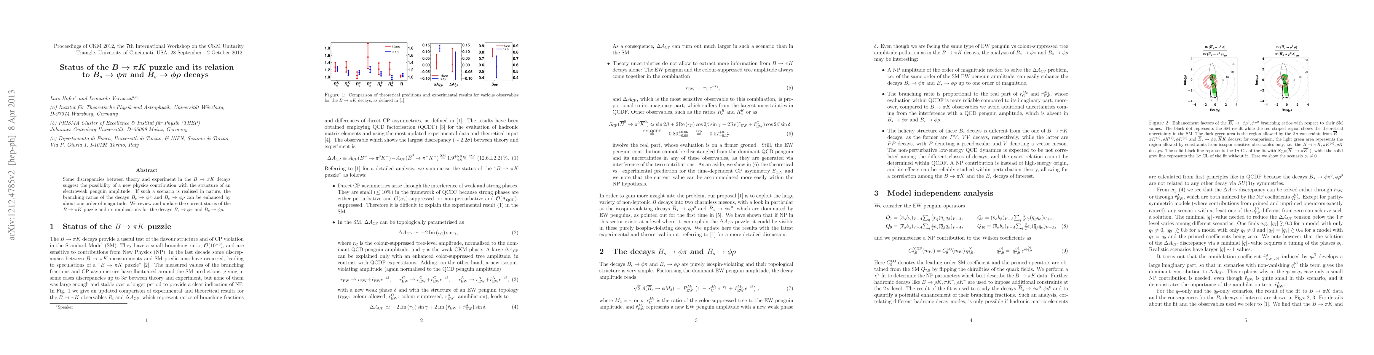 Some discrepancies between theory and experiment in the B -> pi K decays suggest the possibility of a new physics contribution with the structure of an electroweak penguin amplitude. If such a scenario is realised in nature, the branching ratios of the decays B_s -> phi pi and B_s -> phi rho can be enhanced by about one order of magnitude. We review and update the current status of the B -> pi K puzzle and its implications for the decays B_s -> phi pi and B_s -> phi rho.