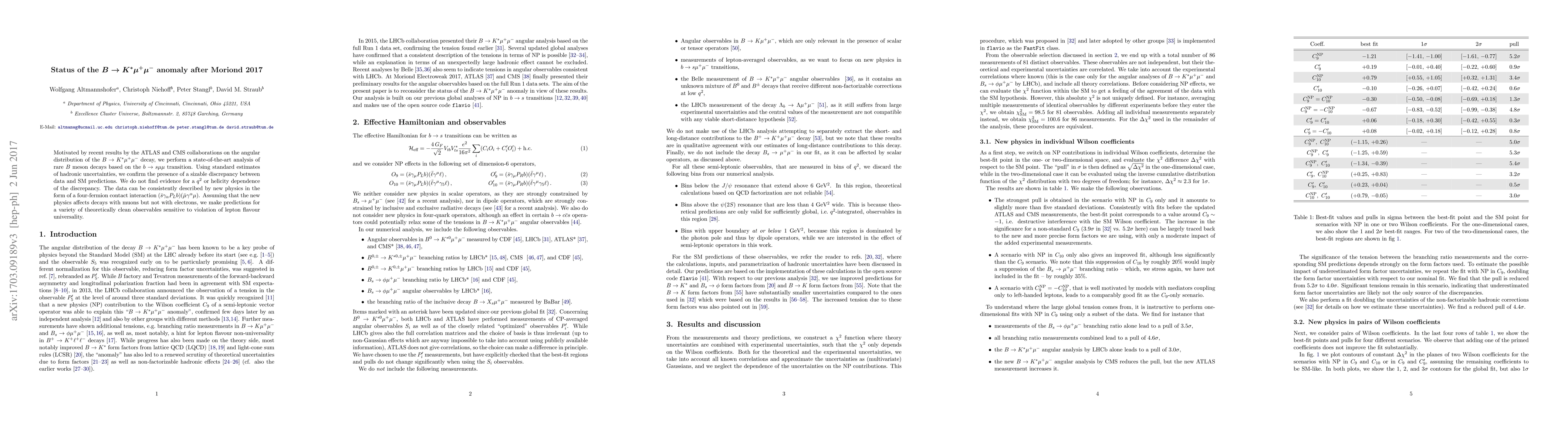 Motivated by recent results by the ATLAS and CMS collaborations on the angular distribution of the $B \to K^* \mu^+\mu^-$ decay, we perform a state-of-the-art analysis of rare $B$ meson decays based on the $b \to s \mu \mu$ transition. Using standard estimates of hadronic uncertainties, we confirm the presence of a sizable discrepancy between data and SM predictions. We do not find evidence for a $q^2$ or helicity dependence of the discrepancy. The data can be consistently described by new physics in the form of a four-fermion contact interaction $(\bar s \gamma_\alpha P_L b)(\bar \mu \gamma^\alpha \mu)$. Assuming that the new physics affects decays with muons but not with electrons, we make predictions for a variety of theoretically clean observables sensitive to violation of lepton flavour universality.