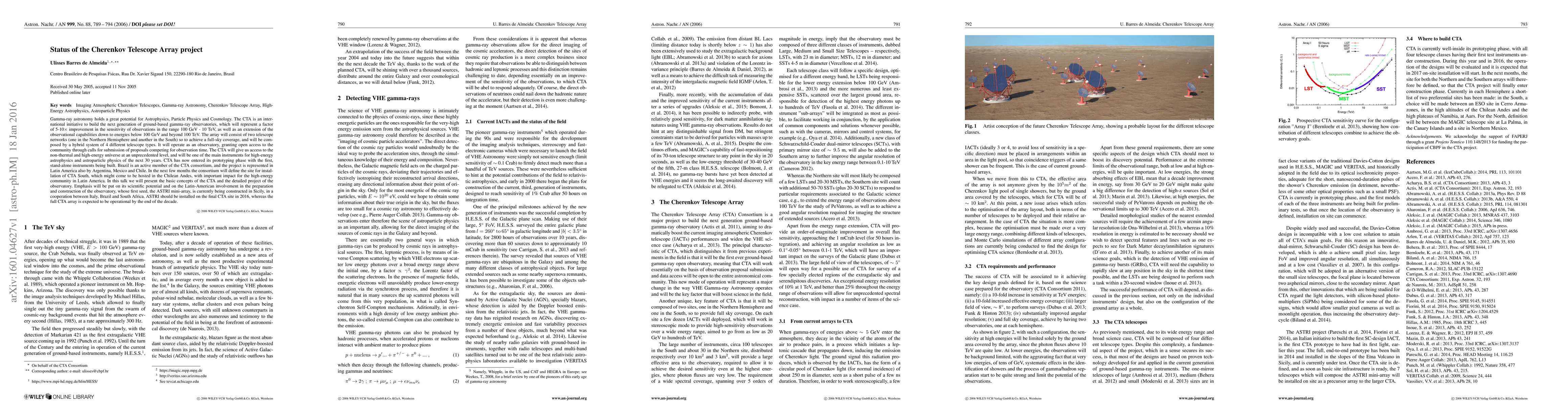 Gamma-ray astronomy holds a great potential for Astrophysics, Particle Physics and Cosmology. The CTA is an inter- national initiative to build the next generation of ground-based gamma-ray observatories, which will represent a factor of 5-10 times improvement in the sensitivity of observations in the range 100 GeV - 10 TeV, as well as an extension of the observational capabilities down to energies below 100 GeV and beyond 100 TeV. The array will consist of two telescope networks (one in the Northern Hemisphere and another in the South) so to achieve a full-sky coverage, and will be com- posed by a hybrid system of 4 different telescope types. It will operate as an observatory, granting open access to the community through calls for submission of proposals competing for observation time. The CTA will give us access to the non-thermal and high-energy universe at an unprecedented level, and will be one of the main instruments for high-energy astrophysics and astroparticle physics of the next 30 years. CTA has now entered its prototyping phase with the first, stand-alone instruments being built. Brazil is an active member of the CTA consortium, and the project is represented in Latin America also by Argentina, Mexico and Chile. In the next few months the consortium will define the site for instal- lation of CTA South, which might come to be hosted in the Chilean Andes, with important impact for the high-energy community in Latin America. In this talk we will present the basic concepts of the CTA and the detailed project of the observatory. Emphasis will be put on its scientific potential and on the Latin-American involvement in the preparation and construction of the observatory, whose first seed, the ASTRI mini-array, is currently being constructed in Sicily, in a cooperation between Italy, Brazil and South Africa.