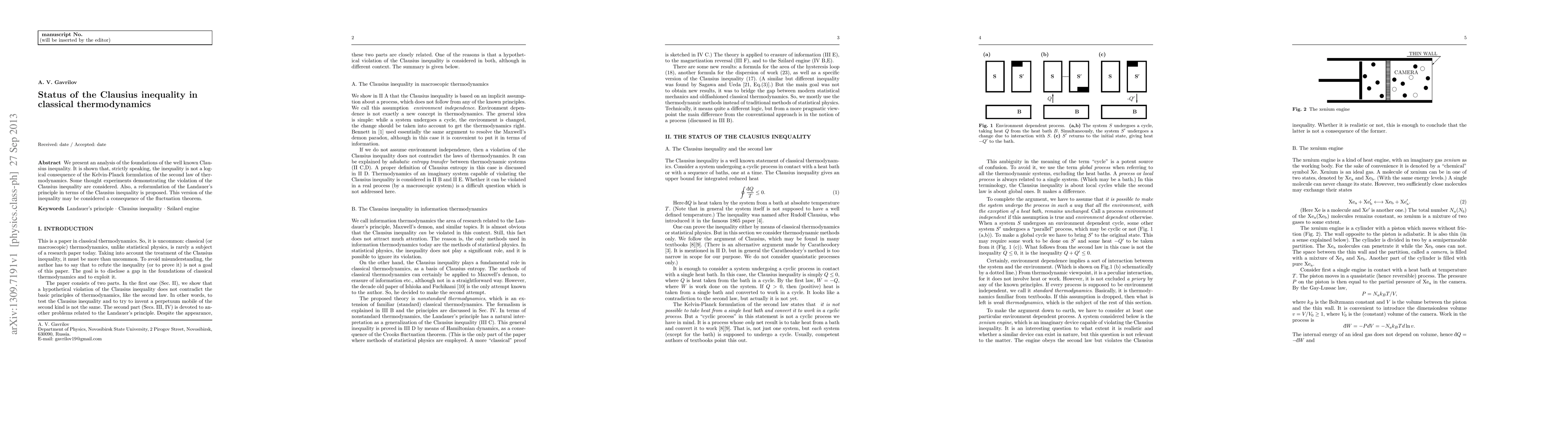 We present an analysis of the foundations of the well known Clausius inequality. It is shown that, strictly speaking, the inequality is not a logical consequence of the Kelvin-Planck formulation of the second law of thermodynamics. Some thought experiments demonstrating the violation of the Clausius inequality are considered. Also, a reformulation of the Landauer's principle in terms of the Clausius inequality is proposed. This version of the inequality may be considered a consequence of the fluctuation theorem.