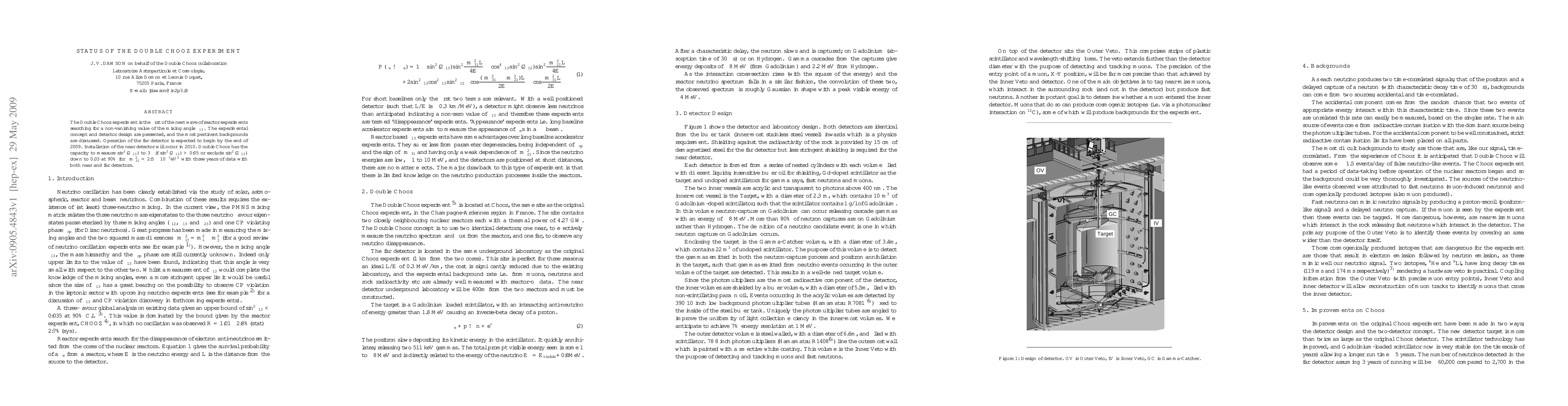 The Double Chooz experiment aims to detect a non-zero value for the mixing angle theta_13 using reactor neutrino sources. It plans to begin operations with the far detector by the end of 2009 and the near detector in 2010, with the goal of achieving precise measurements of sin^2(2theta_13).