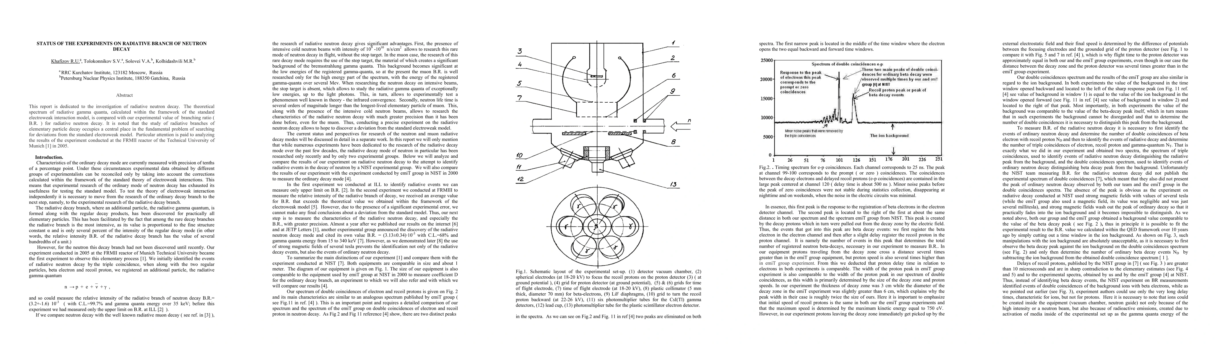 This report is dedicated to the investigation of radiative neutron decay. The theoretical spectrum of radiative gamma quanta, calculated within the framework of the standard electroweak interaction model, is compared with our experimental value of branching ratio (B.R.) for radiative neutron decay. It is noted that the study of radiative branches of elementary particle decay occupies a central place in the fundamental problem of searching for deviations from the standard electroweak model. Particular attention is paid to analyzing the results of the experiment conducted at the FRMII reactor of the Technical University of Munich in 2005.