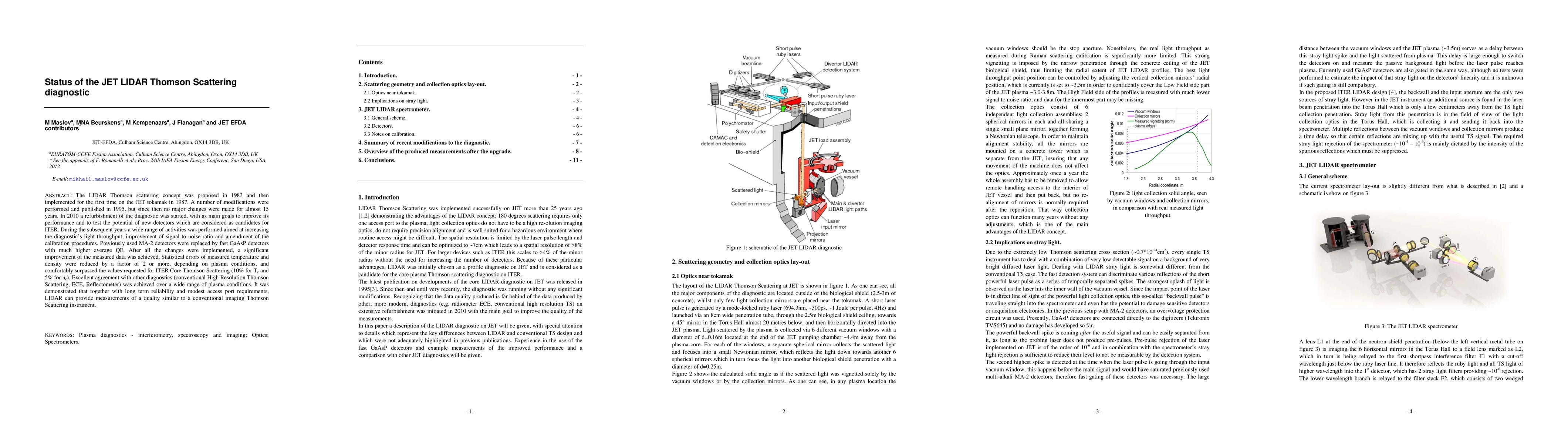The JET LIDAR Thomson scattering diagnostic underwent a major refurbishment in 2010, replacing old detectors with new fast GaAsP detectors, which significantly improved data quality and reduced statistical errors by a factor of 2 or more. The upgraded system now meets ITER requirements and shows excellent agreement with other diagnostics.