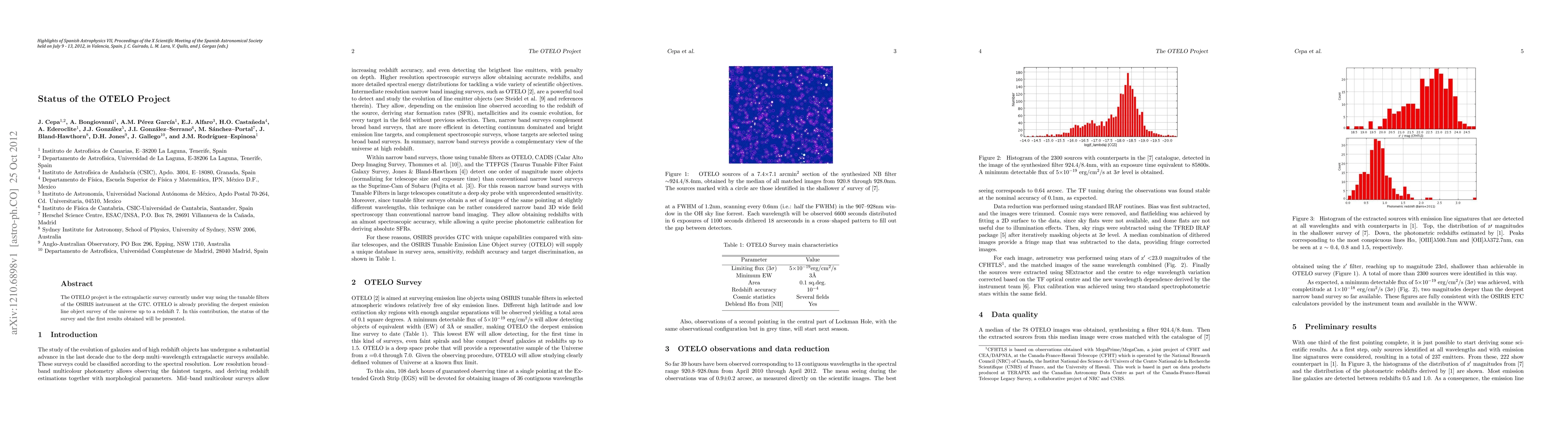 The OTELO project is providing the deepest emission line object survey of the universe up to a redshift 7 using the OSIRIS instrument at the GTC. The project's status and initial findings have been presented.
