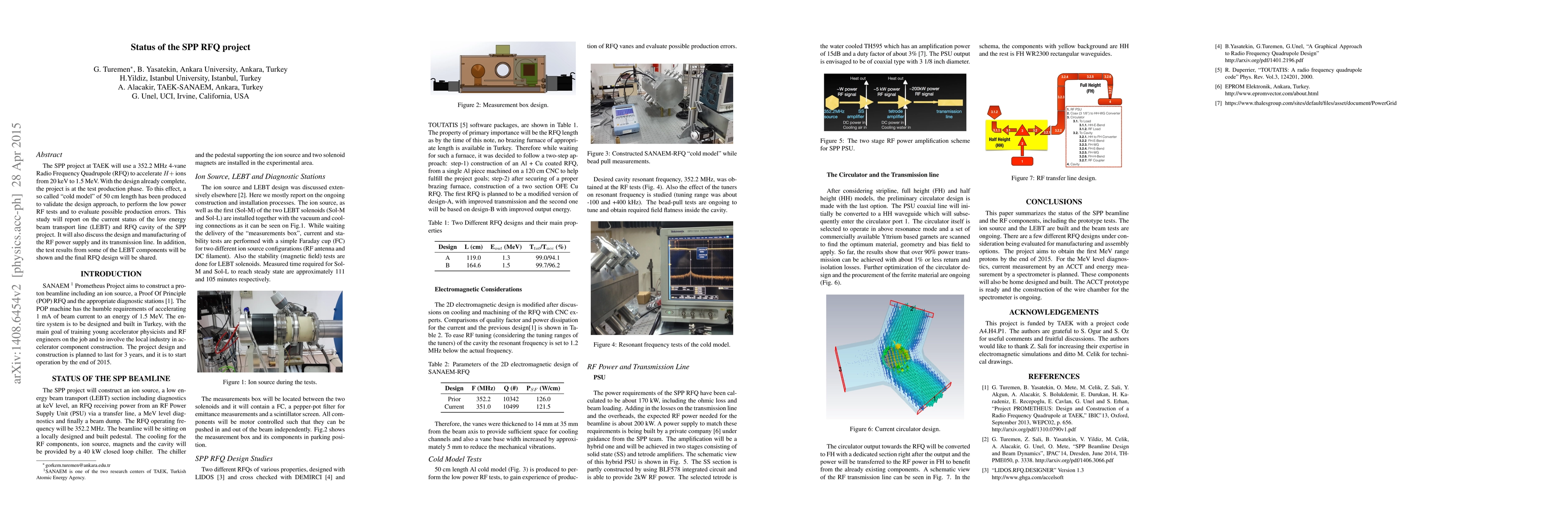 A current status report on the SPP RFQ project discusses advancements in beam transport line and RFQ cavity design, as well as test results from low power RF tests.