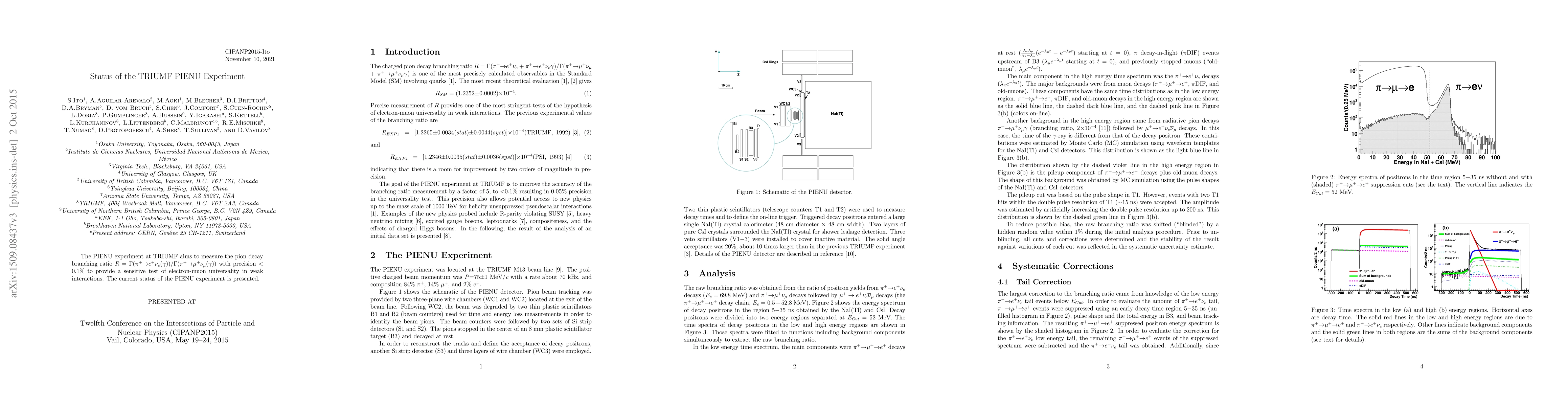 The PIENU experiment at TRIUMF aims to measure the pion decay branching ratio $R={\Gamma}({\pi}^+{\rightarrow}e^+{\nu}_e({\gamma}))/{\Gamma}({\pi}^+{\rightarrow}{\mu}^+{\nu}_{\mu}({\gamma}))$ with precision $<0.1$% to provide a sensitive test of electron-muon universality in weak interactions. The current status of the PIENU experiment is presented.