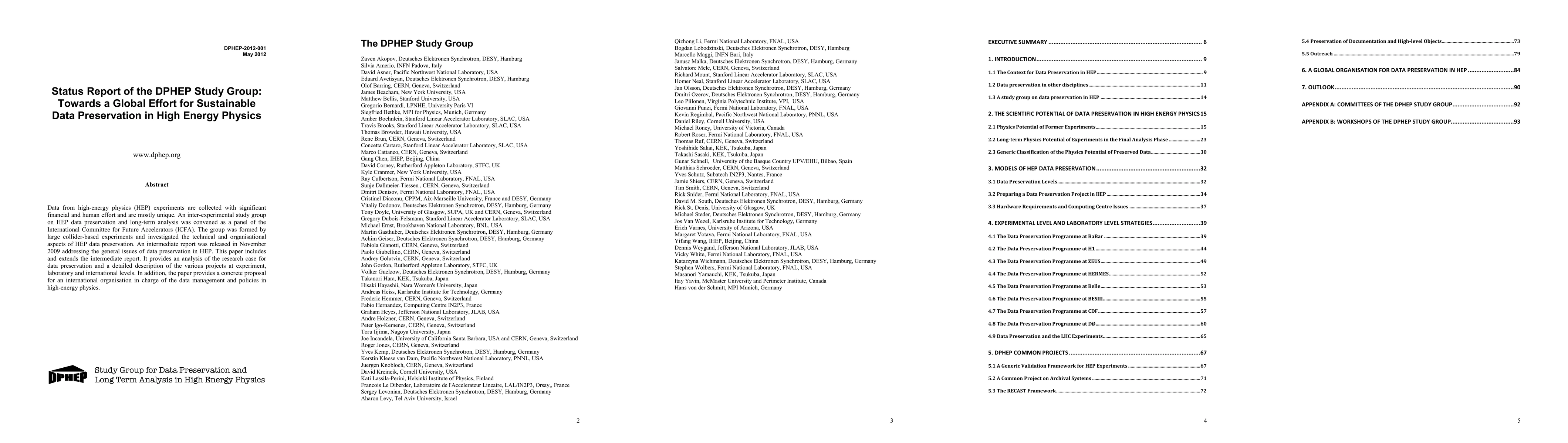 Data from high-energy physics (HEP) experiments are collected with significant financial and human effort and are mostly unique. An inter-experimental study group on HEP data preservation and long-term analysis was convened as a panel of the International Committee for Future Accelerators (ICFA). The group was formed by large collider-based experiments and investigated the technical and organisational aspects of HEP data preservation. An intermediate report was released in November 2009 addressing the general issues of data preservation in HEP. This paper includes and extends the intermediate report. It provides an analysis of the research case for data preservation and a detailed description of the various projects at experiment, laboratory and international levels. In addition, the paper provides a concrete proposal for an international organisation in charge of the data management and policies in high-energy physics.