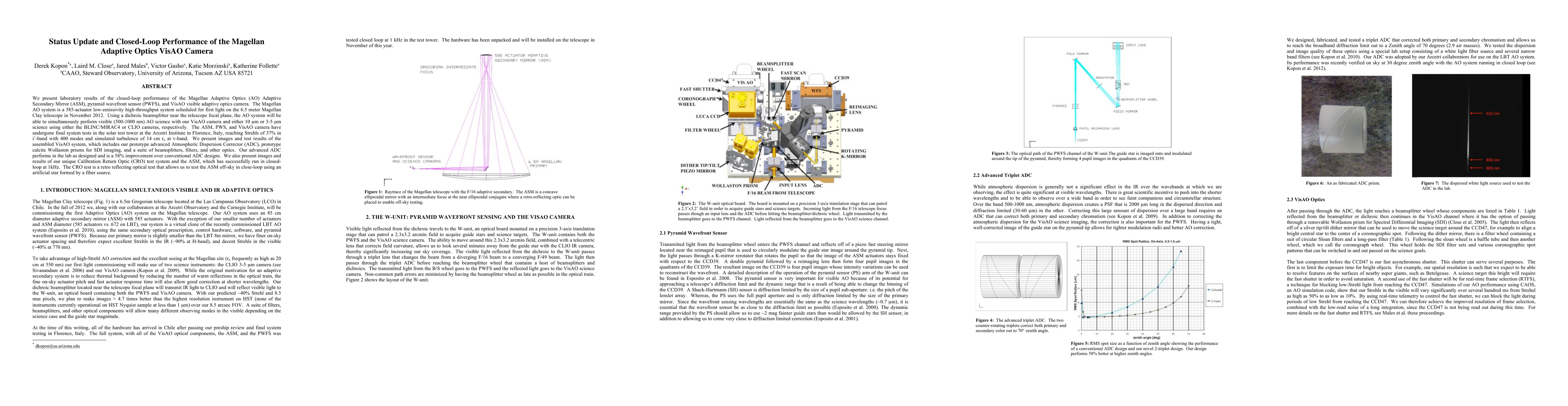 This paper reports on the laboratory performance of the Magellan Adaptive Optics system, including the ASM, PWFS, and VisAO camera, achieving 37% Strehl ratio in i'-band. The advanced Atmospheric Dispersion Corrector (ADC) shows a 58% improvement over conventional designs, and the system successfully ran in closed-loop at 1kHz.