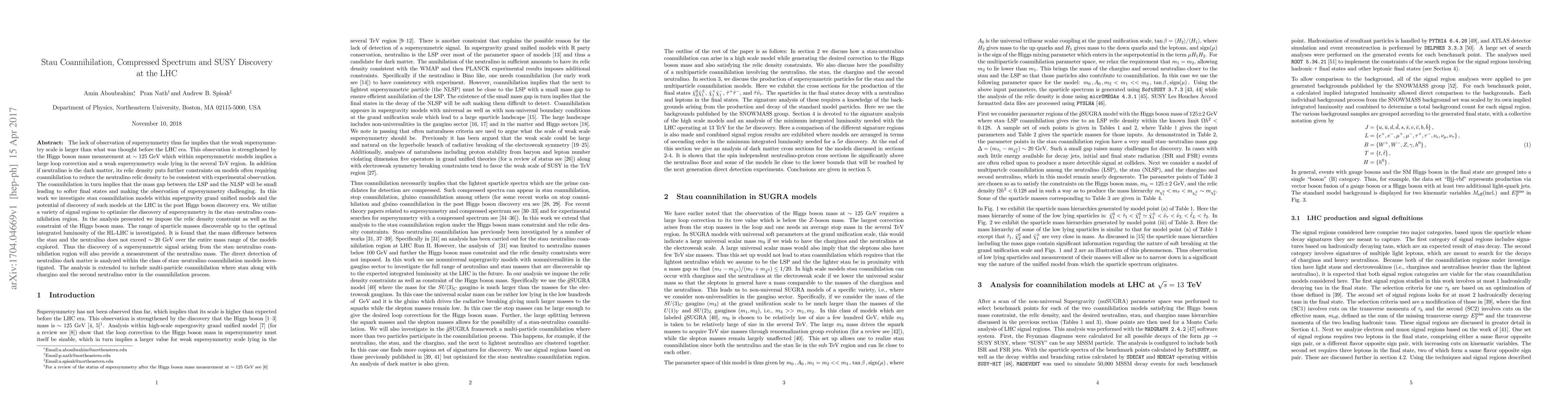 This paper explores stau coannihilation models in the context of supergravity grand unified theories, focusing on the potential for discovering supersymmetry at the LHC post-Higgs boson discovery. It investigates scenarios where the mass gap between the stau and neutralino is small, making detection challenging, and evaluates the range of sparticle masses detectable up to the HL-LHC's optimal luminosity.