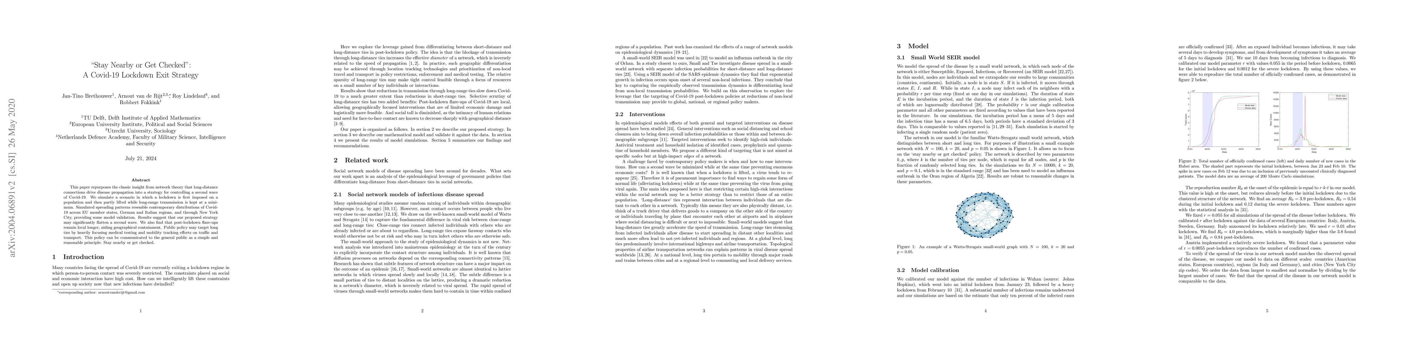 This paper repurposes the classic insight from network theory that long-distance connections drive disease propagation into a strategy for controlling a second wave of Covid-19. We simulate a scenario in which a lockdown is first imposed on a population and then partly lifted while long-range transmission is kept at a minimum. Simulated spreading patterns resemble contemporary distributions of Covid-19 across nations, regions, and provinces, providing some model validation. Results suggest that the proposed strategy may significantly flatten a second wave. We also find that post-lockdown flare-ups remain local longer, aiding geographical containment. Public policy may target long ties by heavily focusing medical testing and mobility tracking efforts on traffic and transport. This policy can be communicated to the general public as a simple and reasonable principle: Stay nearby or get checked.
