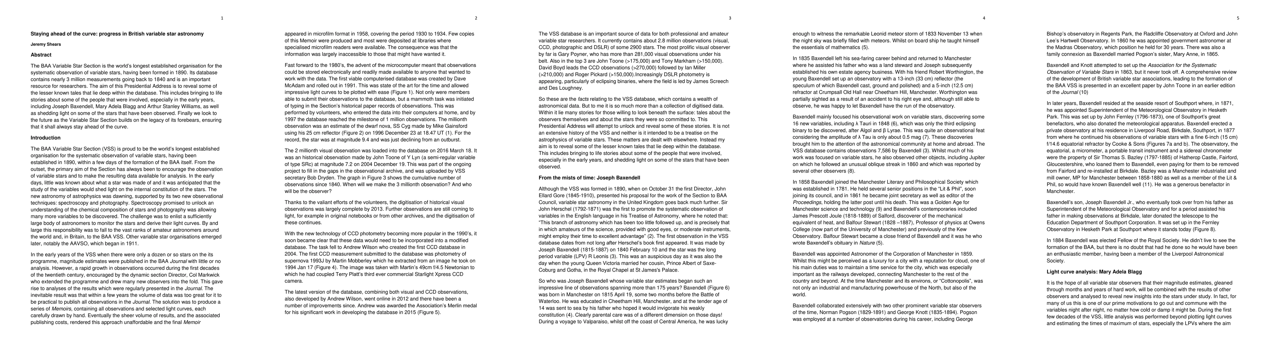 The BAA Variable Star Section is the world's longest established organisation for the systematic observation of variable stars, having been formed in 1890. Its database contains nearly 3 million measurements going back to 1840 and is an important resource for researchers. The aim of this Presidential Address is to reveal some of the lesser known tales that lie deep within the database. This includes bringing to life stories about some of the people that were involved, especially in the early years, including Joseph Baxendell, Mary Adela Blagg and Arthur Stanley Williams, as well as shedding light on some of the stars that have been observed. Finally we look to the future as the Variable Star Section builds on the legacy of its forebears, ensuring that it shall always stay ahead of the curve.