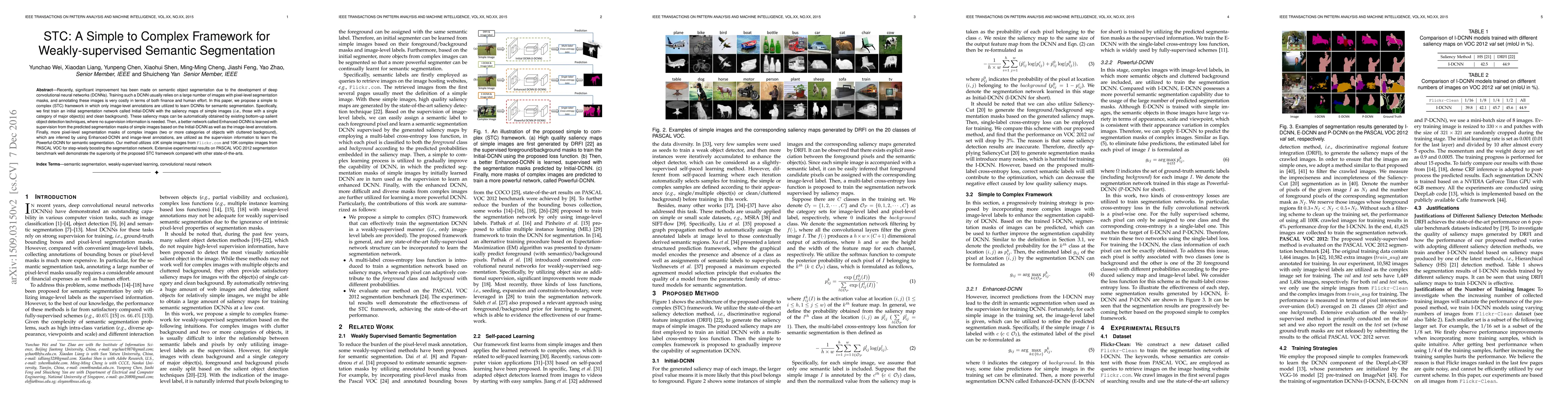 The paper presents a simple to complex (STC) framework for weakly-supervised semantic segmentation using only image-level annotations, progressively training deep convolutional neural networks (DCNNs) through initial, enhanced, and powerful stages, ultimately achieving superior performance compared to state-of-the-art methods on the PASCAL VOC 2012 benchmark.