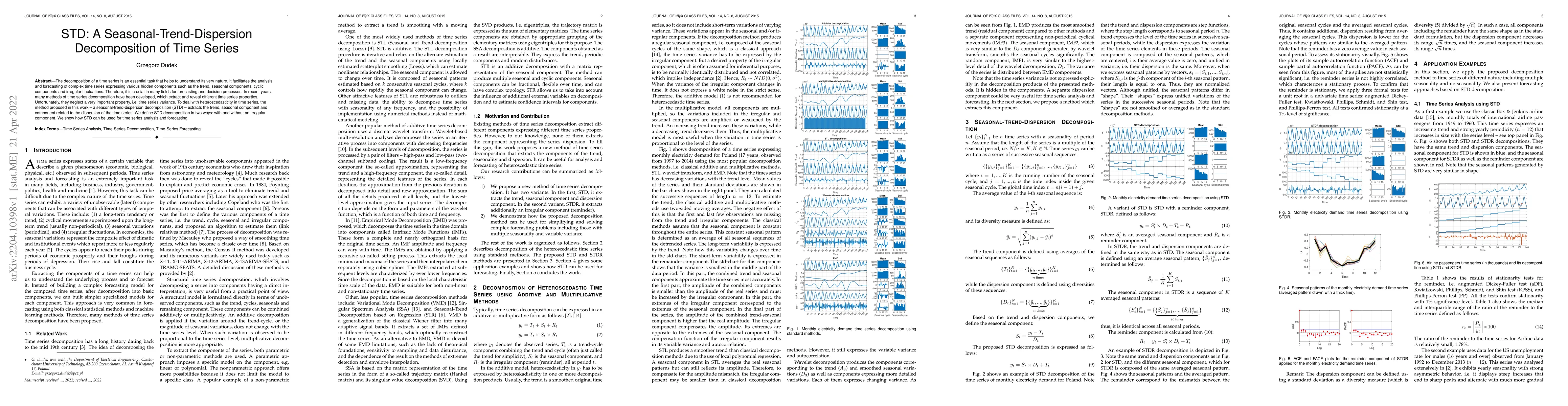 The paper introduces the Seasonal-Trend-Dispersion (STD) decomposition method, which addresses heteroscedasticity in time series by extracting trend, seasonal, and dispersion components. The STD method is presented in two forms: with and without an irregular component, and its utility in time series analysis and forecasting is demonstrated.