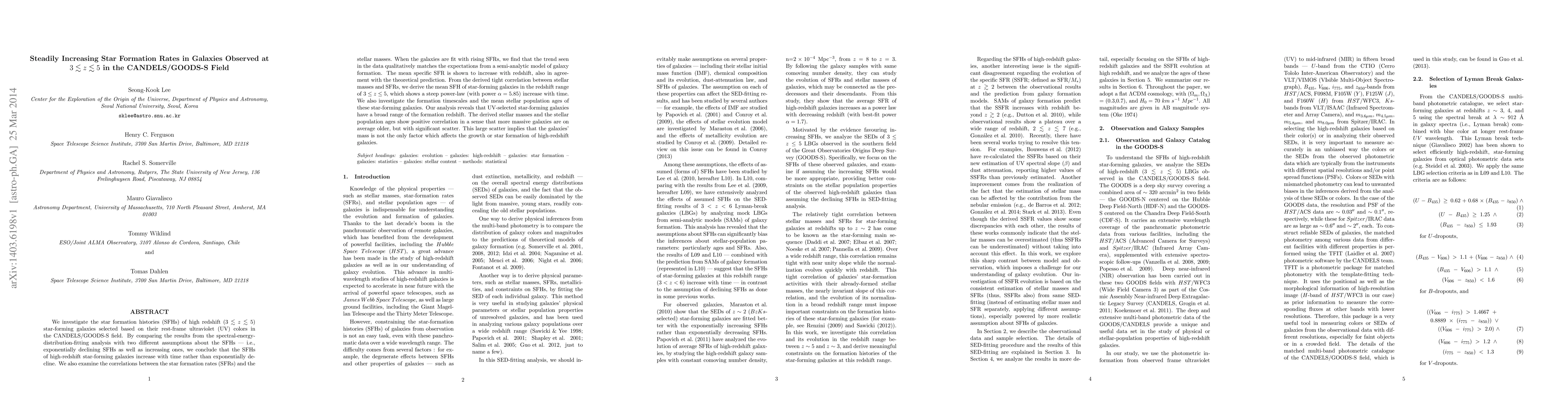 This study reveals that high-redshift (3 <~ z <~ 5) star-forming galaxies exhibit increasing star formation rates over time, contrary to exponentially declining trends. The analysis shows a strong correlation between stellar masses and star formation rates, indicating a steep power-law increase in star formation history with a power of 5.85, and suggests that factors beyond mass influence the star formation in these galaxies.