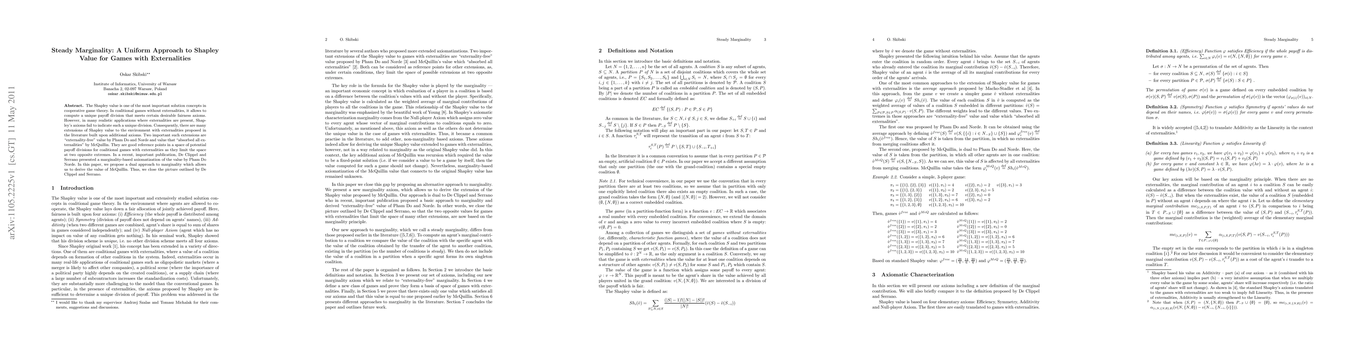 The Shapley value is one of the most important solution concepts in cooperative game theory. In coalitional games without externalities, it allows to compute a unique payoff division that meets certain desirable fairness axioms. However, in many realistic applications where externalities are present, Shapley's axioms fail to indicate such a unique division. Consequently, there are many extensions of Shapley value to the environment with externalities proposed in the literature built upon additional axioms. Two important such extensions are "externality-free" value by Pham Do and Norde and value that "absorbed all externalities" by McQuillin. They are good reference points in a space of potential payoff divisions for coalitional games with externalities as they limit the space at two opposite extremes. In a recent, important publication, De Clippel and Serrano presented a marginality-based axiomatization of the value by Pham Do Norde. In this paper, we propose a dual approach to marginality which allows us to derive the value of McQuillin. Thus, we close the picture outlined by De Clippel and Serrano.