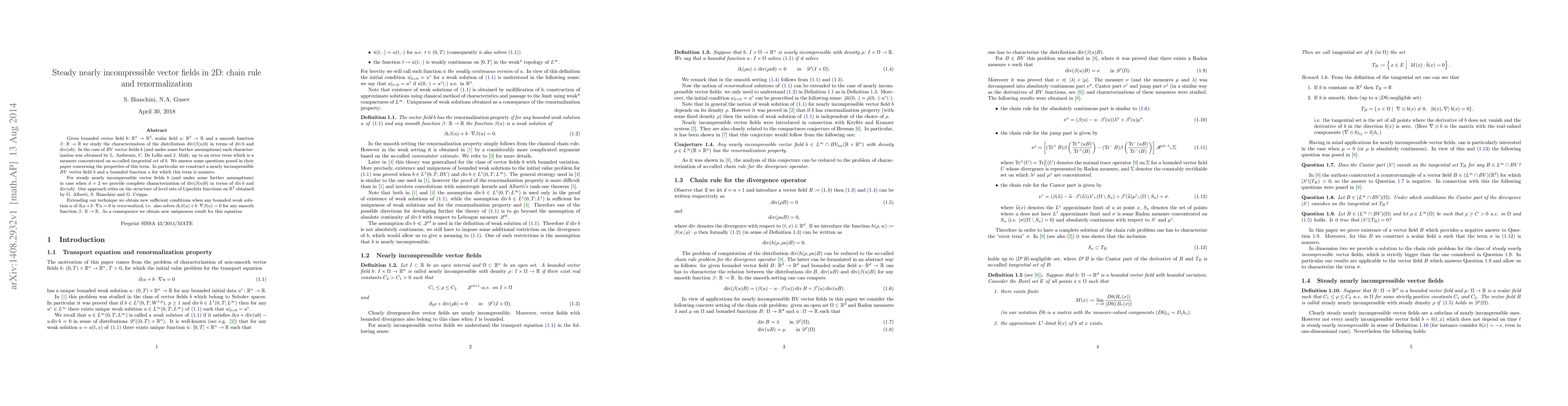 Research paper characterizes distribution of div((u*b)) in terms of div(b) and div(u*b), with new results for steady nearly incompressible vector fields in 2D.