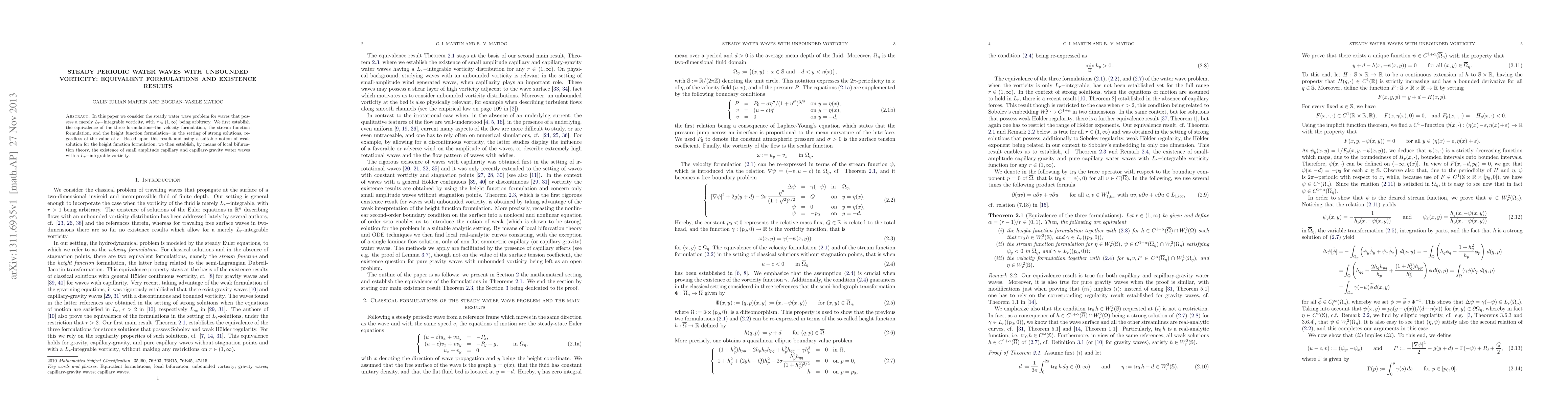 In this paper we consider the steady water wave problem for waves that possess a merely $L_r-$integrable vorticity, with $r\in(1,\infty)$ being arbitrary. We first establish the equivalence of the three formulations--the velocity formulation, the stream function formulation, and the height function formulation-- in the setting of strong solutions, regardless of the value of $r$. Based upon this result and using a suitable notion of weak solution for the height function formulation, we then establish, by means of local bifurcation theory, the existence of small amplitude capillary and capillary-gravity water waves with a $L_r-$integrable vorticity.