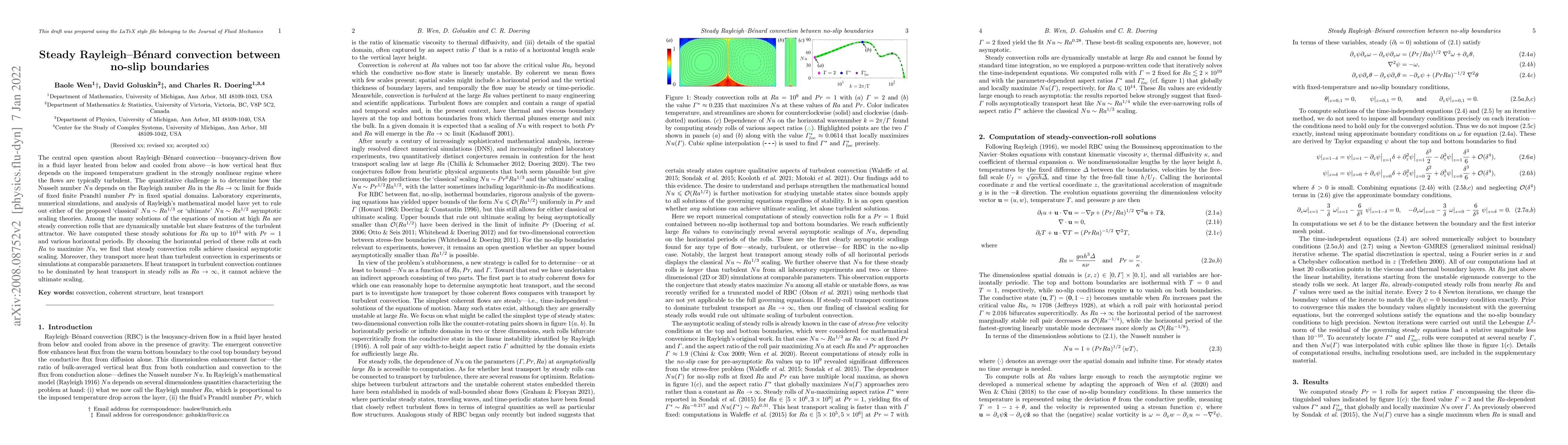 The central open question about Rayleigh--B\'enard convection -- buoyancy-driven flow in a fluid layer heated from below and cooled from above -- is how vertical heat flux depends on the imposed temperature gradient in the strongly nonlinear regime where the flows are typically turbulent. The quantitative challenge is to determine how the Nusselt number $Nu$ depends on the Rayleigh number $Ra$ in the $Ra\to\infty$ limit for fluids of fixed finite Prandtl number $Pr$ in fixed spatial domains. Laboratory experiments, numerical simulations, and analysis of Rayleigh's mathematical model have yet to rule out either of the proposed `classical' $Nu \sim Ra^{1/3}$ or `ultimate' $Nu \sim Ra^{1/2}$ asymptotic scaling theories. Among the many solutions of the equations of motion at high $Ra$ are steady convection rolls that are dynamically unstable but share features of the turbulent attractor. We have computed these steady solutions for $Ra$ up to $10^{14}$ with $Pr=1$ and various horizontal periods. By choosing the horizontal period of these rolls at each $Ra$ to maximize $Nu$, we find that steady convection rolls achieve classical asymptotic scaling. Moreover, they transport more heat than turbulent convection in experiments or simulations at comparable parameters. If heat transport in turbulent convection continues to be dominated by heat transport in steady rolls as $Ra\to\infty$, it cannot achieve the ultimate scaling.