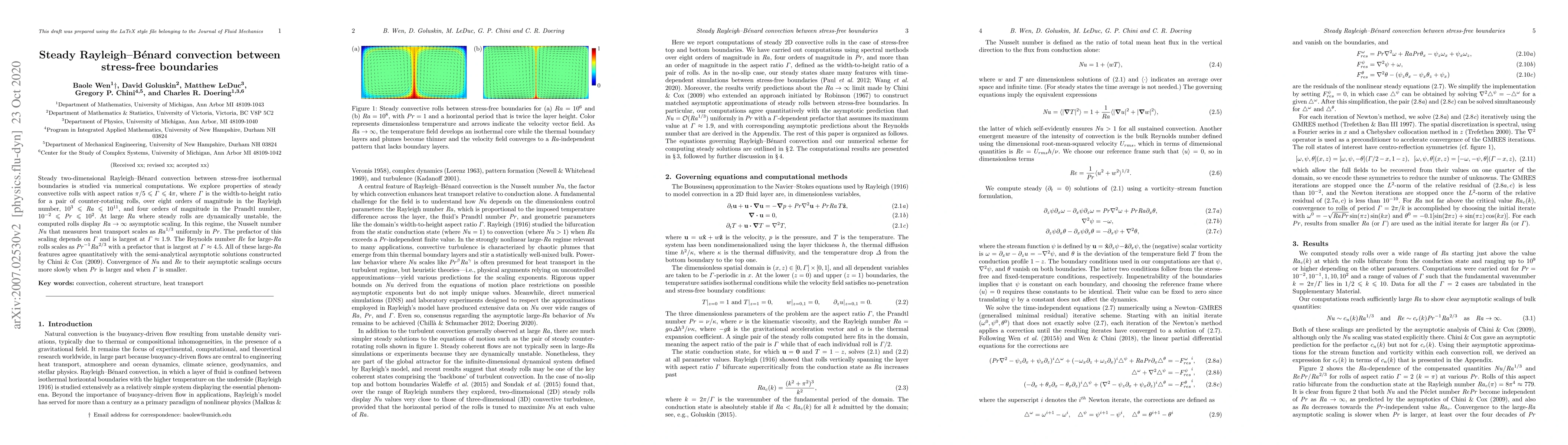 Steady two-dimensional Rayleigh--B\'enard convection between stress-free isothermal boundaries is studied via numerical computations. We explore properties of steady convective rolls with aspect ratios $\pi/5\le\Gamma\le4\pi$, where $\Gamma$ is the width-to-height ratio for a pair of counter-rotating rolls, over eight orders of magnitude in the Rayleigh number, $10^3\le Ra\le10^{11}$, and four orders of magnitude in the Prandtl number, $10^{-2}\le Pr\le10^2$. At large $Ra$ where steady rolls are dynamically unstable, the computed rolls display $Ra \rightarrow \infty$ asymptotic scaling. In this regime, the Nusselt number $Nu$ that measures heat transport scales as $Ra^{1/3}$ uniformly in $Pr$. The prefactor of this scaling depends on $\Gamma$ and is largest at $\Gamma \approx 1.9$. The Reynolds number $Re$ for large-$Ra$ rolls scales as $Pr^{-1} Ra^{2/3}$ with a prefactor that is largest at $\Gamma \approx 4.5$. All of these large-$Ra$ features agree quantitatively with the semi-analytical asymptotic solutions constructed by Chini \& Cox (2009). Convergence of $Nu$ and $Re$ to their asymptotic scalings occurs more slowly when $Pr$ is larger and when $\Gamma$ is smaller.