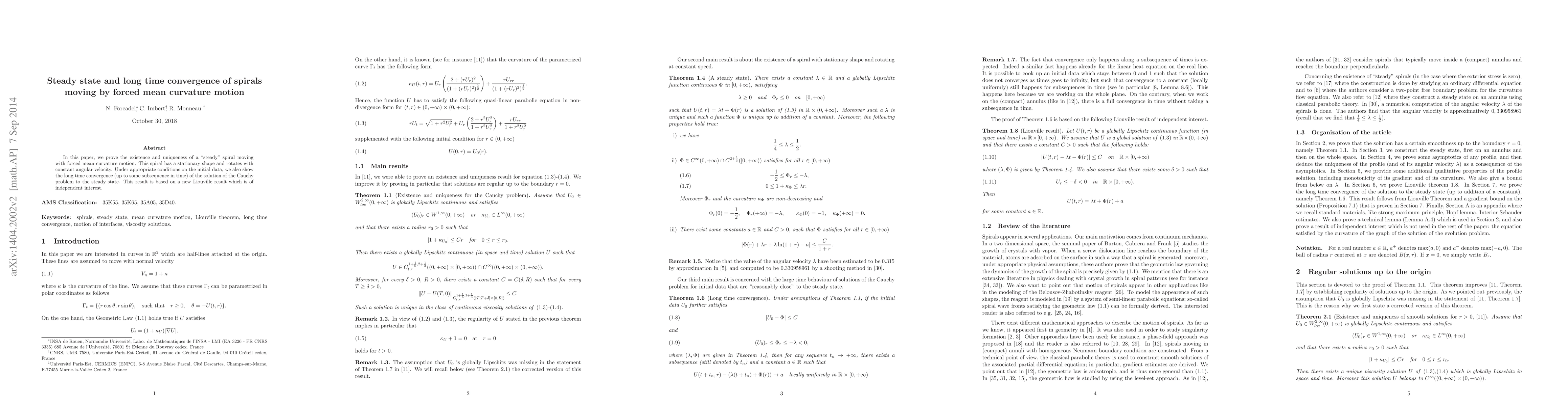 Researchers prove the existence and uniqueness of a steady spiral that moves with constant angular velocity under forced mean curvature motion, and show its long time convergence to the steady state under certain conditions.