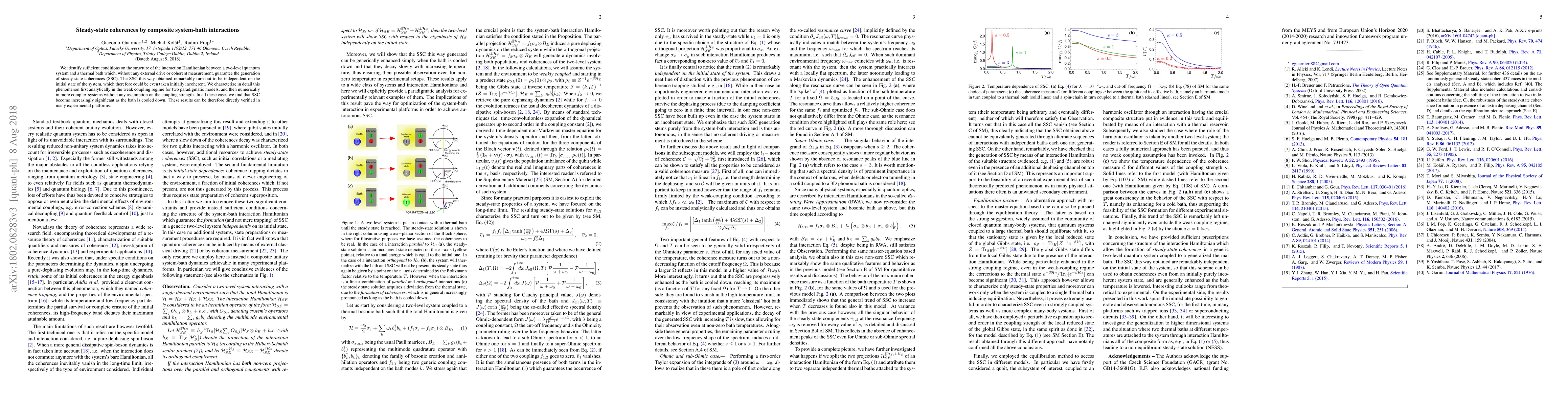 We identify sufficient conditions on the structure of the interaction Hamiltonian between a two-level quantum system and a thermal bath which, without any external drive or coherent measurement, guarantee the generation of steady-state coherences (SSC). The SSC this way obtained remarkably turn out to be independent on the initial state of the system, which therefore could be even taken initially incoherent. We characterize in detail this phenomenon first analytically in the weak coupling regime for two paradigmatic models, and then numerically in more complex systems without any assumption on the coupling strength. In all these cases we find that SSC become increasingly significant as the bath is cooled down. These results can be therefore directly verified in many experimental platforms.