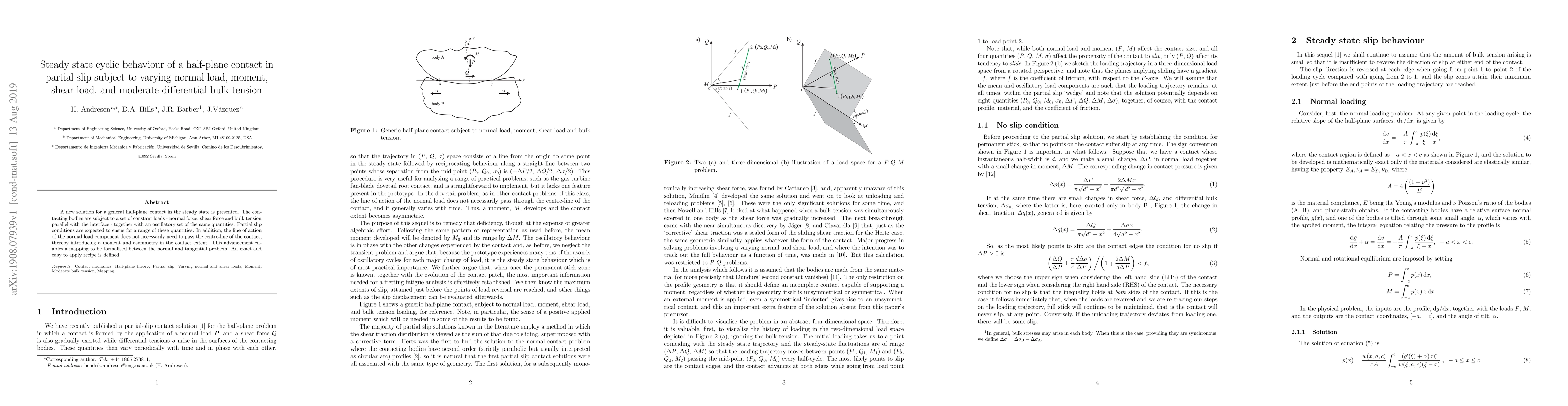 A new solution for a general half-plane contact in the steady state is presented. The contacting bodies are subject to a set of constant loads - normal force, shear force and bulk tension parallel with the interface - together with an oscillatory set of the same quantities. Partial slip conditions are expected to ensue for a range of these quantities. In addition, the line of action of the normal load component does not necessarily need to pass the centre-line of the contact, thereby introducing a moment and asymmetry in the contact extent. This advancement enables a mapping to be formalised between the normal and tangential problem. An exact and easy to apply recipe is defined.