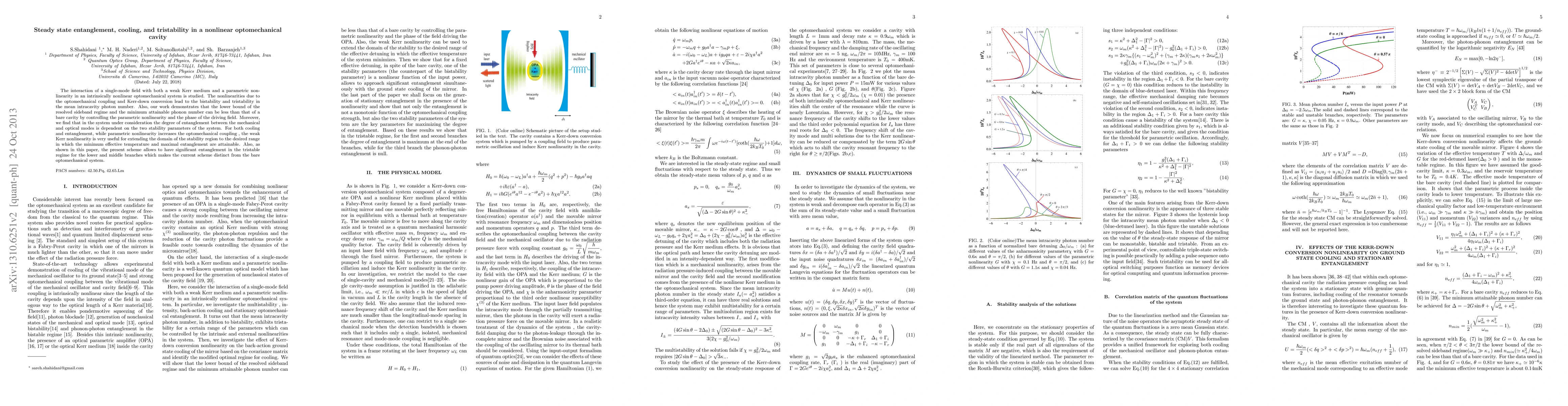 This paper investigates a nonlinear optomechanical cavity with Kerr and parametric nonlinearities, demonstrating tristability, cooling, and steady-state entanglement. The study shows that controlling these nonlinearities can achieve lower phonon numbers and higher entanglement compared to a bare cavity.
