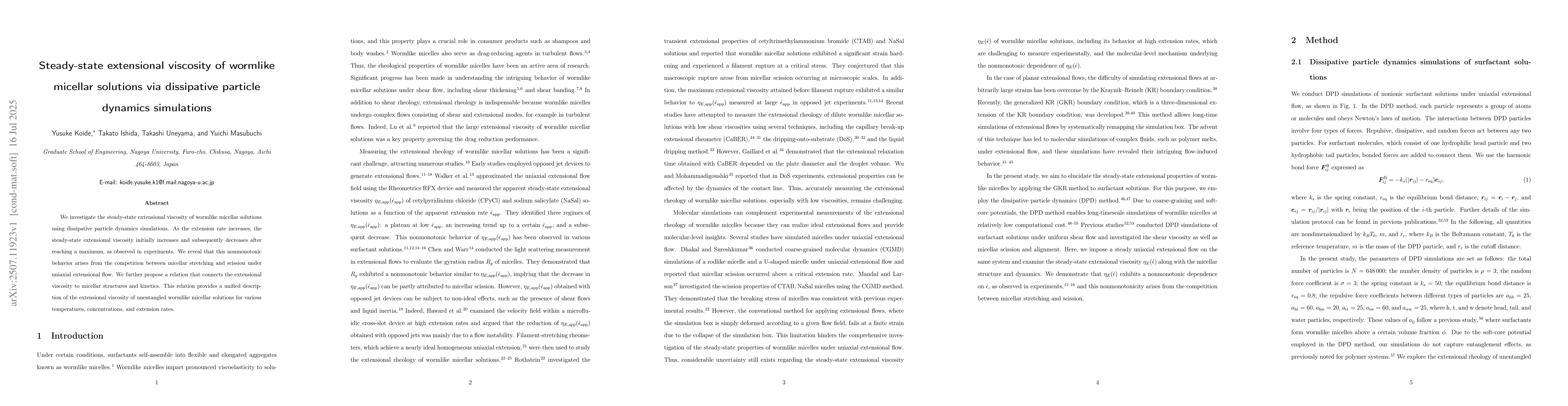 This research utilized dissipative particle dynamics (DPD) simulations to investigate the behavior of worm-like micelles in non-ionic surfactant solutions.