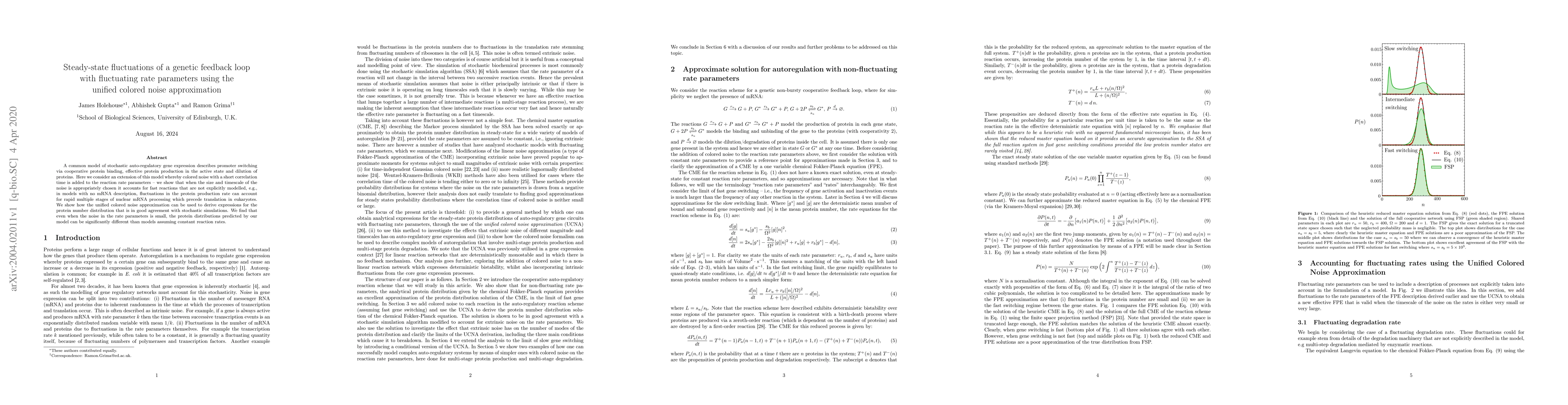A common model of stochastic auto-regulatory gene expression describes promoter switching via cooperative protein binding, effective protein production in the active state and dilution of proteins. Here we consider an extension of this model whereby colored noise with a short correlation time is added to the reaction rate parameters -- we show that when the size and timescale of the noise is appropriately chosen it accounts for fast reactions that are not explicitly modelled, e.g., in models with no mRNA description, fluctuations in the protein production rate can account for rapid multiple stages of nuclear mRNA processing which precede translation in eukaryotes. We show how the unified colored noise approximation can be used to derive expressions for the protein number distribution that is in good agreement with stochastic simulations. We find that even when the noise in the rate parameters is small, the protein distributions predicted by our model can be significantly different than models assuming constant reaction rates.