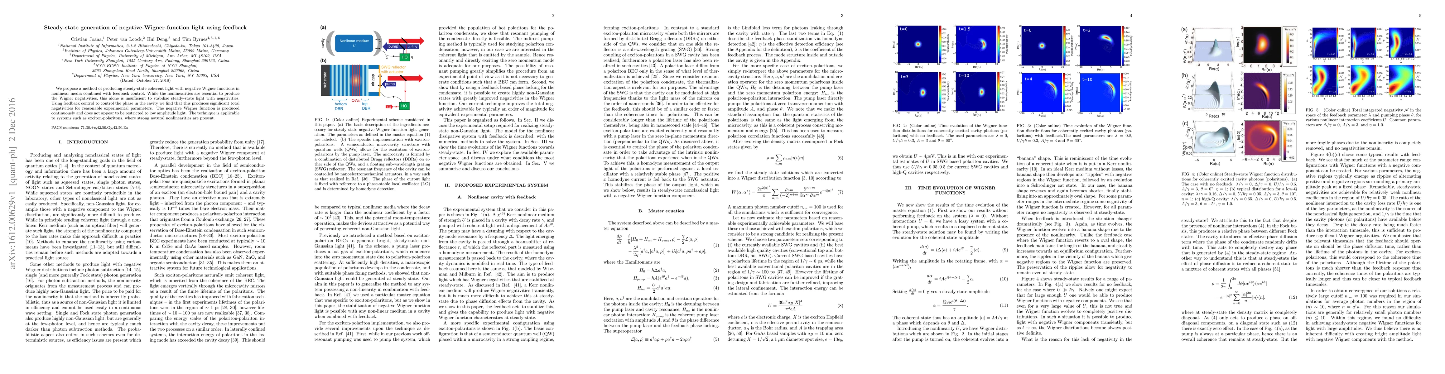 This paper proposes a method to generate steady-state coherent light with negative Wigner functions using nonlinear media and feedback control, which stabilizes the light with negativities and is applicable to systems like exciton-polaritons. The technique allows continuous production of negative Wigner functions without restriction to low-amplitude light.