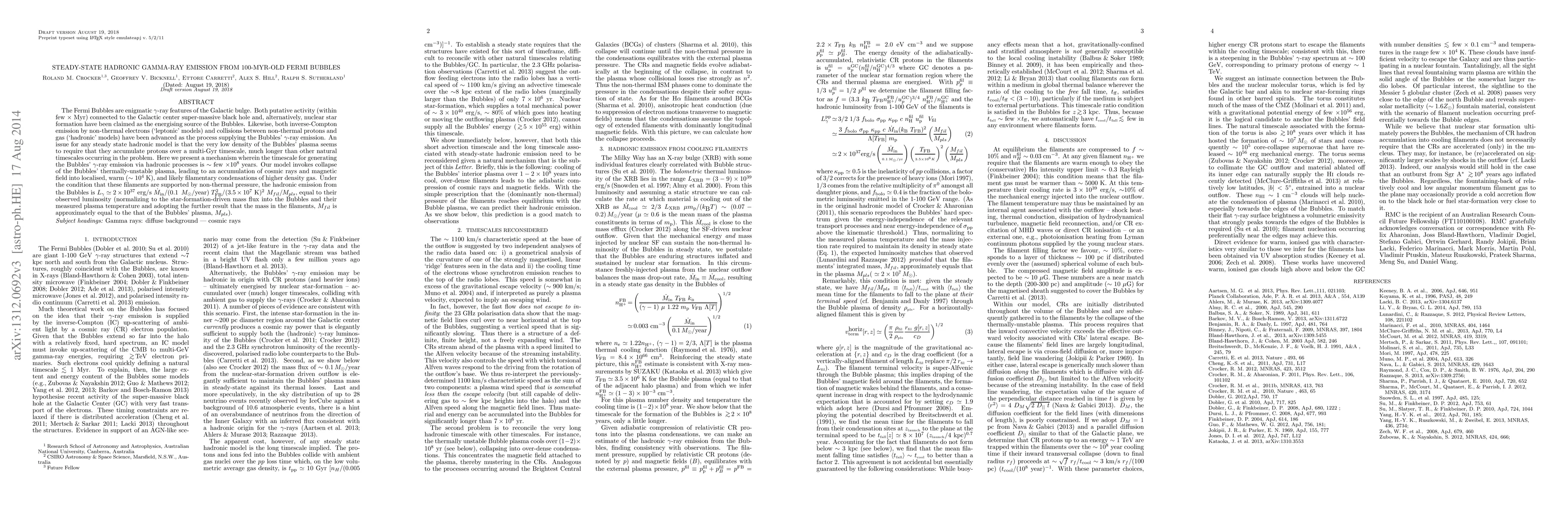 The Fermi Bubbles are explained by a new hadronic model proposing that a collapse of thermally-unstable plasma leads to the accumulation of cosmic rays and magnetic field into localised filaments with predicted emission rates.