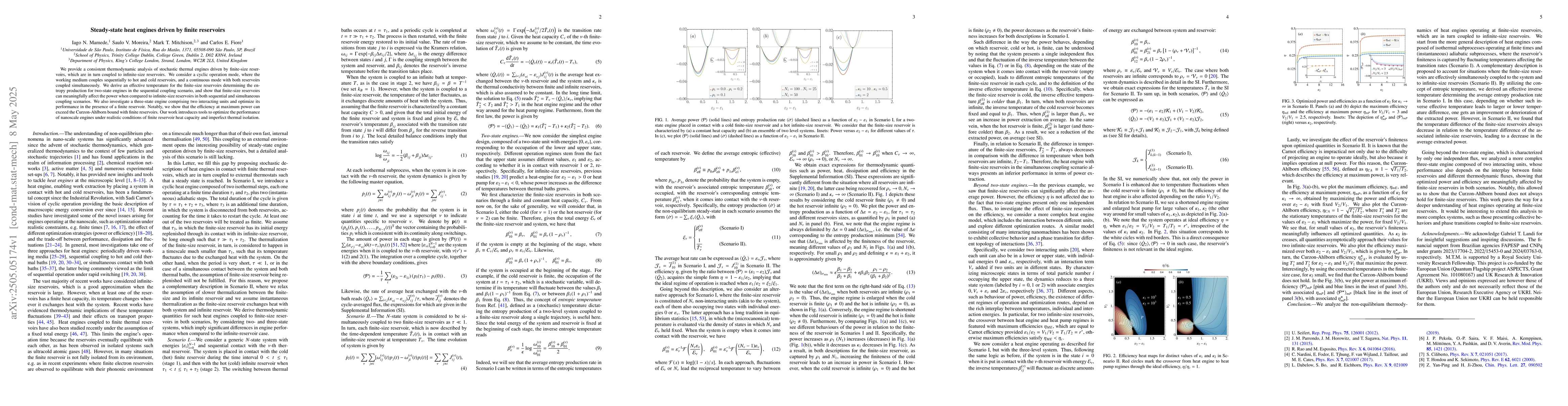 The research uses a thermodynamic analysis of stochastic thermal engines driven by finite-size reservoirs.