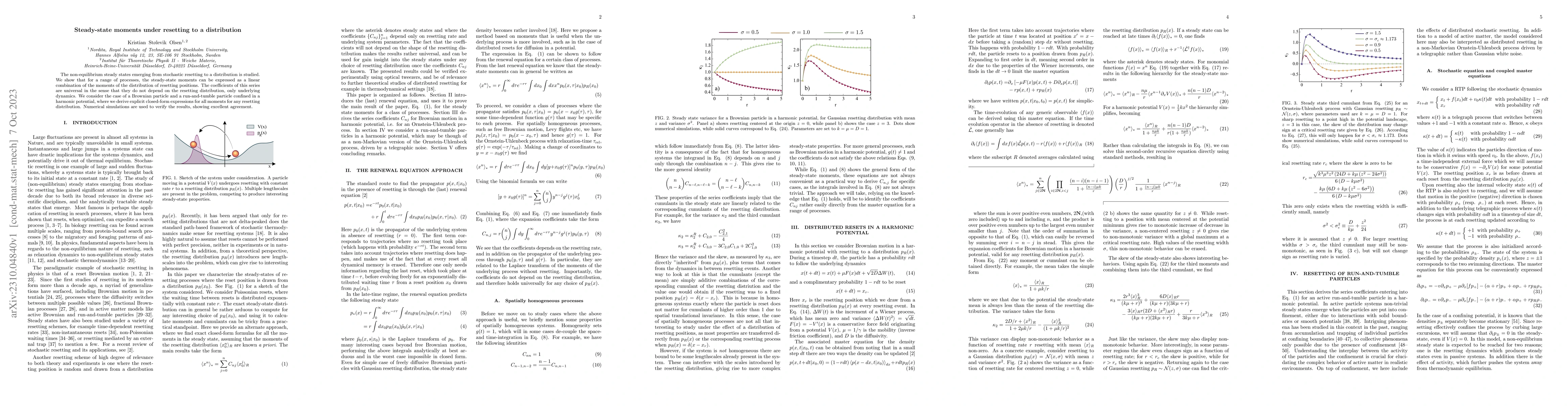 The non-equilibrium steady states emerging from stochastic resetting to a distribution is studied. We show that for a range of processes, the steady-state moments can be expressed as a linear combination of the moments of the distribution of resetting positions. The coefficients of this series are universal in the sense that they do not depend on the resetting distribution, only underlying dynamics. We consider the case of a Brownian particle and a run-and-tumble particle confined in a harmonic potential, where we derive explicit closed-form expressions for all moments for any resetting distribution. Numerical simulations are used to verify the results, showing excellent agreement.